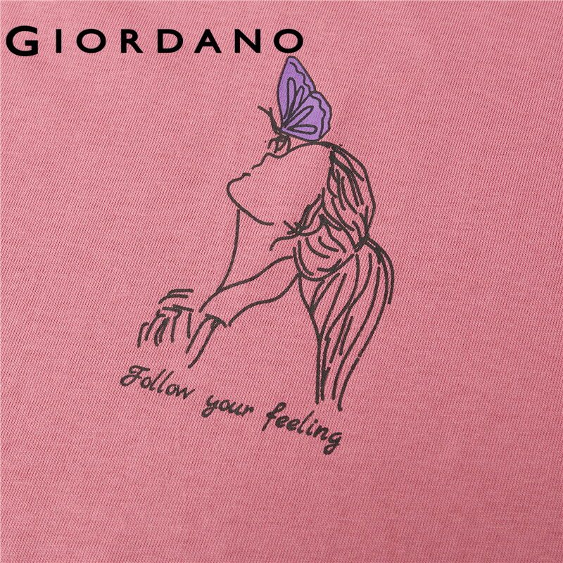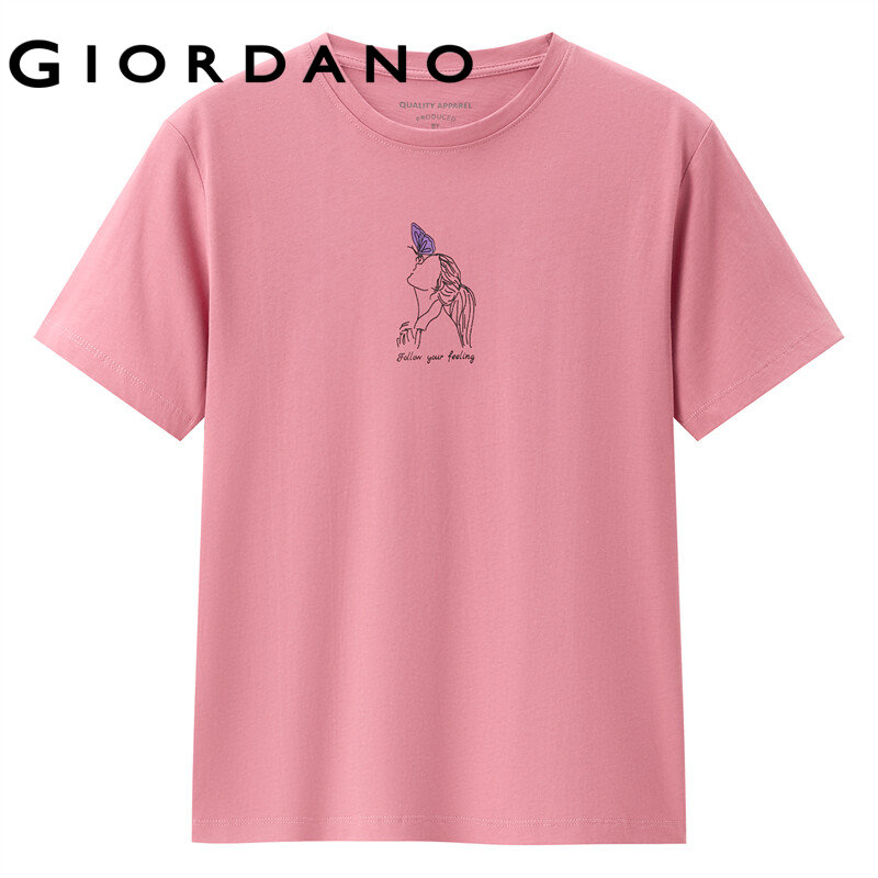 Giordano Women T-Shirts Printed Graphic Smooth T-Shirts Comfy Ribbed Crewneck Short Sleeves Casual Tops Free Shipping 05390220