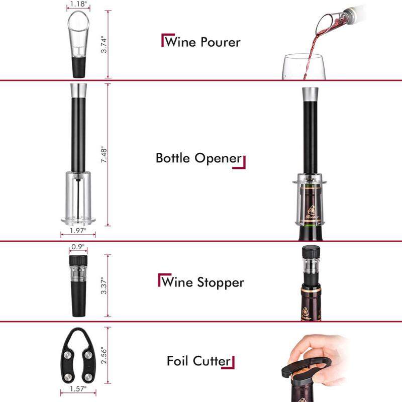 iBestMeasure 4 Pcs Wine Opener Set, Air Pressure Pump Bottle Opener Gift Box Includes Wine Opener Kit Vacuum Stopper and Wine Pourer Tool