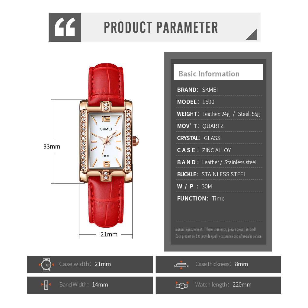 【10-Year Battery Life】SKMEI Women Fashion Watch Elegant Quartz Stainless Steel Waterproof Ladies Wrist Watch For Women 1690