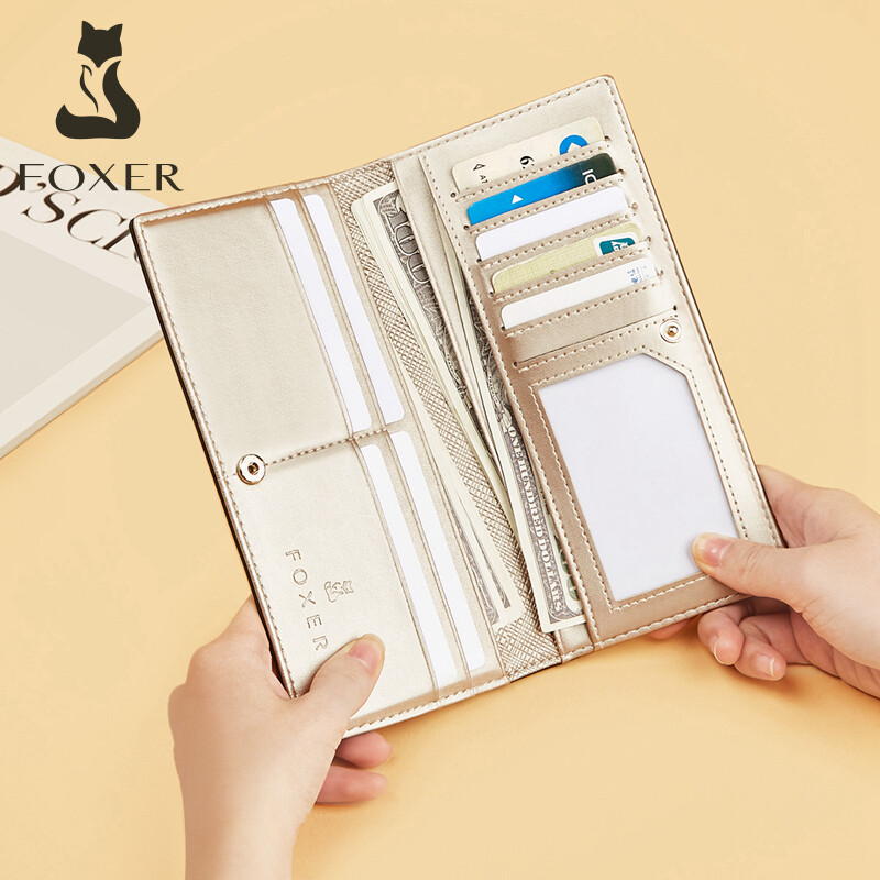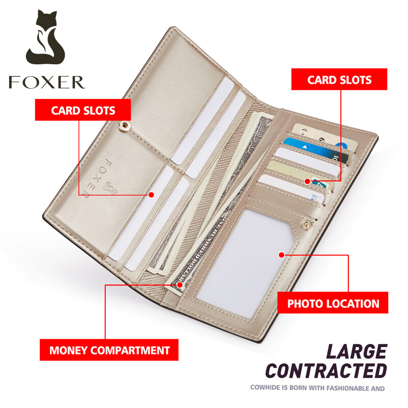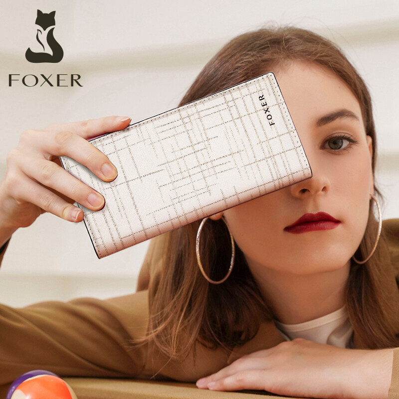 FOXER Brand Women's Card-Holder Fashion Clutch Bag Slim Bifold Wallet Small Coin Purse for Lady Simple Design Multi-function