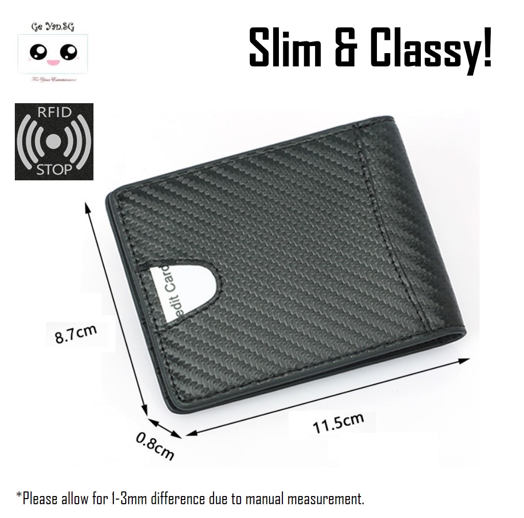 SG Seller FAST Delivery - RFID Blocking Wallet Card Holder BIFOLD Anti RFID ID Credit Card Pocket Wallets For Men - Minimalist ULTRA Slim Carbon Fiber Print Design 1Pc