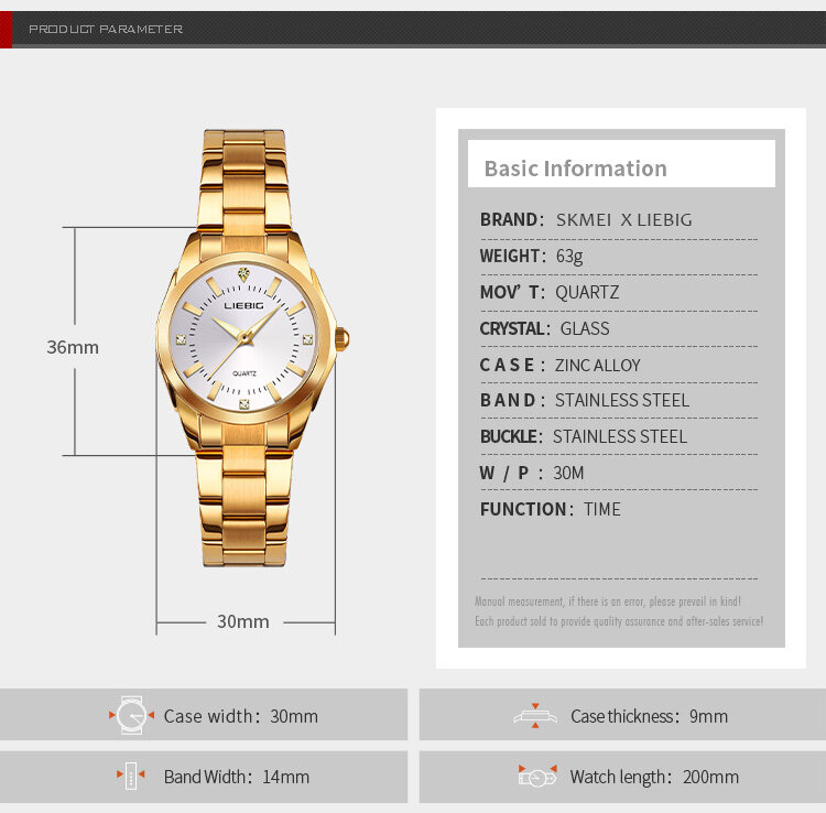 SKMEI LIEBIG New Women Fashion Watches Quartz Waterproof Watch Stainless Steel Elegant Wristwatches Ladies Clock L4005