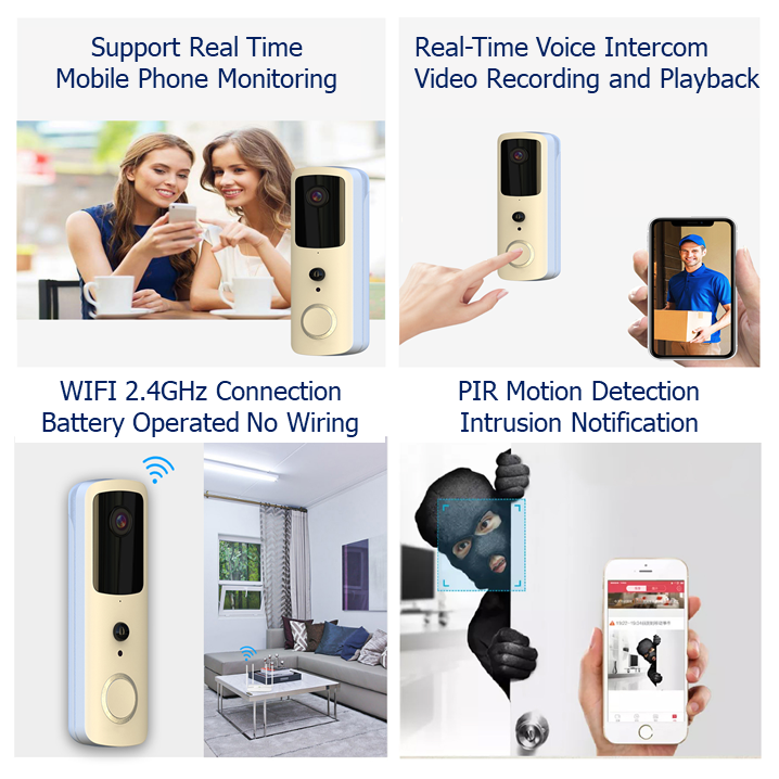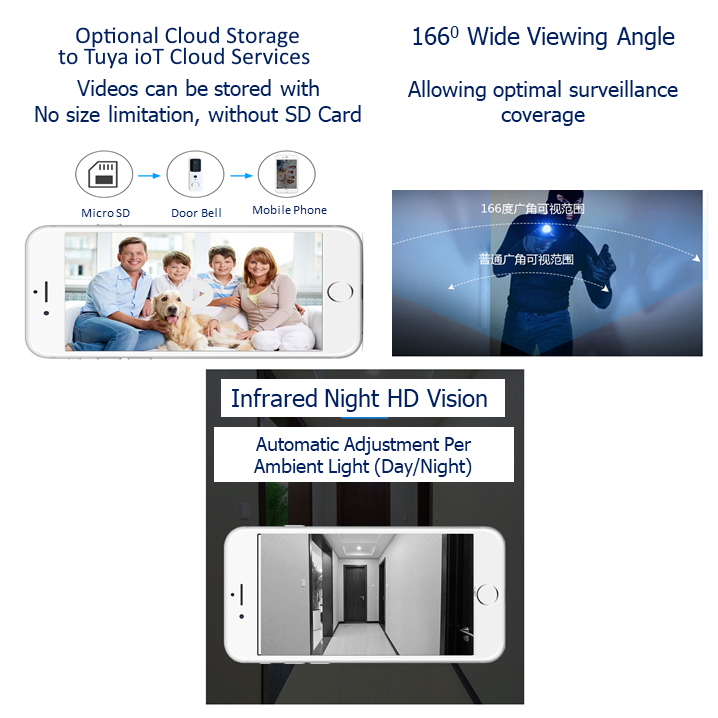 Uses: Guests can make video voice calls and make short-term videos. The owner can know the information without opening the door.