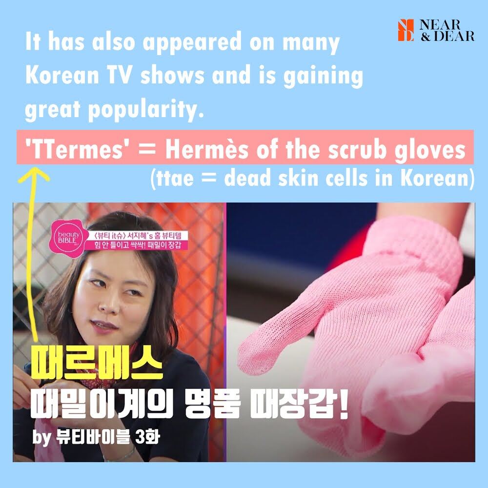 -TTermes = Hermès of the scrub gloves(ttae dead skin cell in Korean)