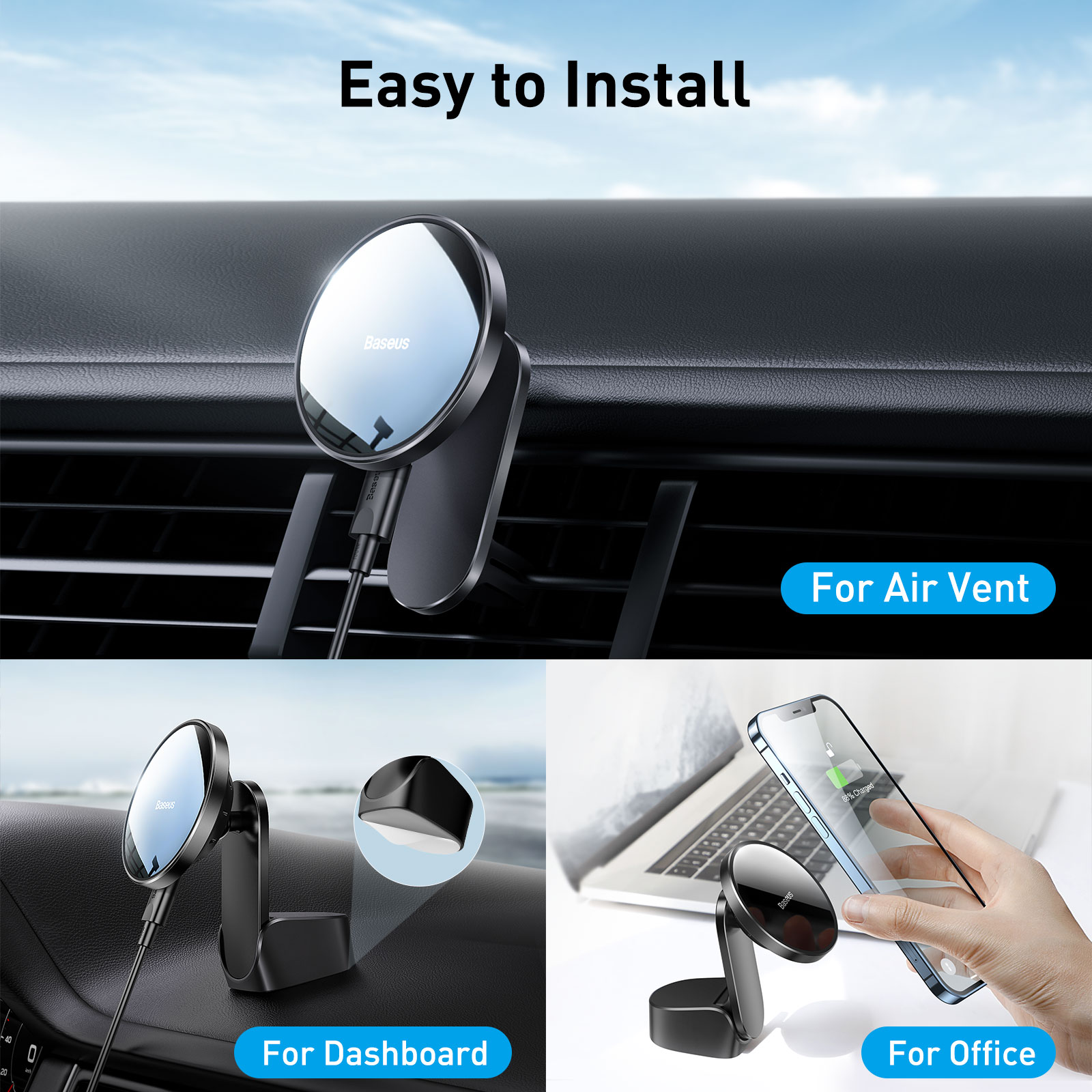 Baseus Magnetic Wireless Car Charger Phone Holder for iPhone 14/13/12 Series Fast Wireless Charger for Car Air Vent Mount Holder Stand
