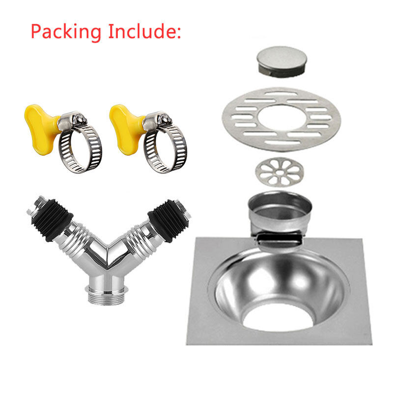 Zookv 304 Stainless Steel Washing Machine Water Floor Drain Trap Combo With Angle Connector For Hole Cover Hose With Double Two Hose Deodorant Filter 4 / 6 Inch Floor Trap Anti Insect Smell Seal Antif