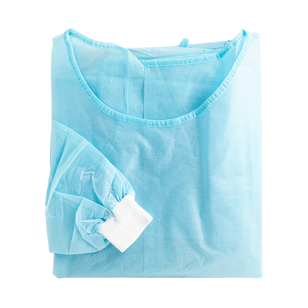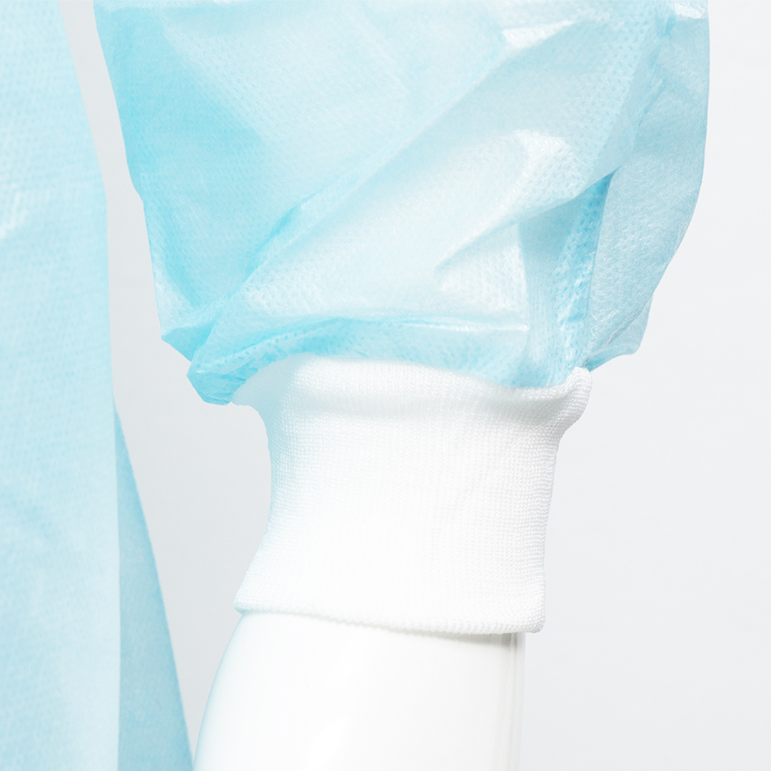 Disposable Isolation Gown with Knitted Cuff, Blue, 30gsm (100pcs/carton)
