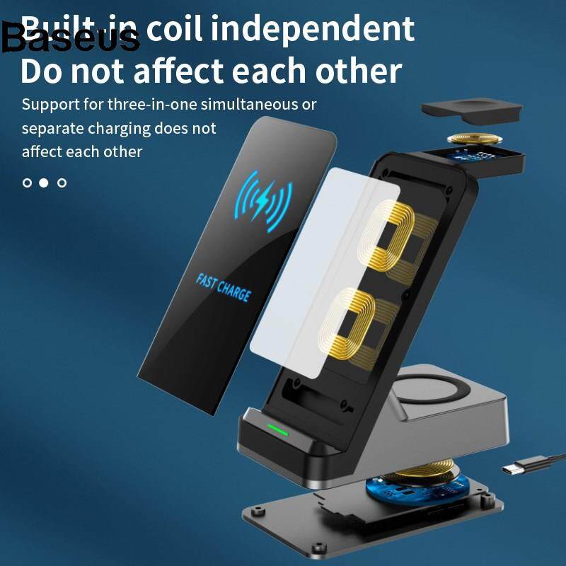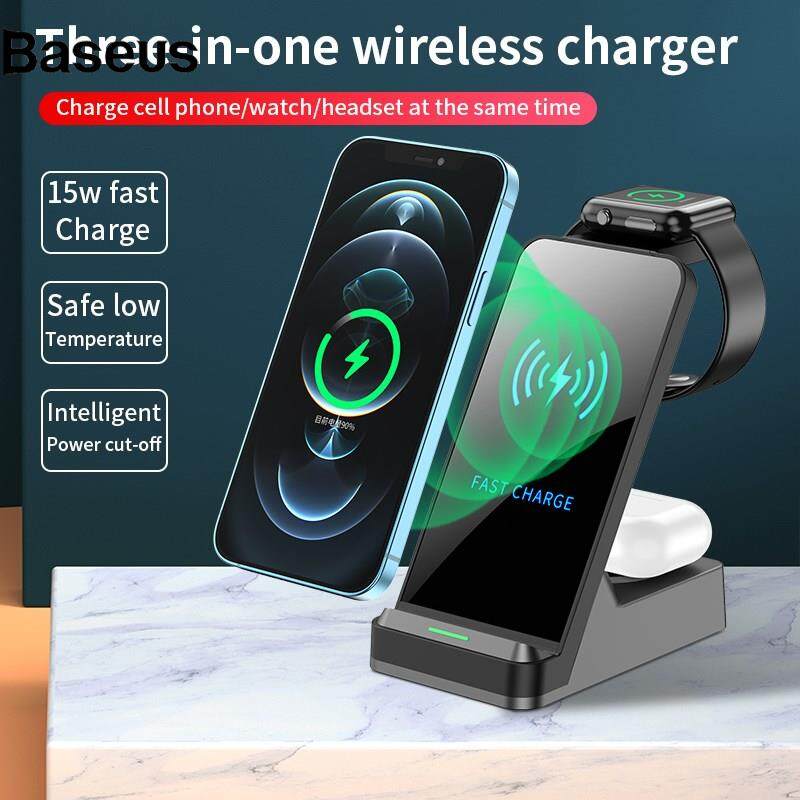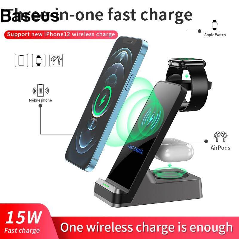 Baseus H15 3 in 1 Wireless Charger Station 15W Qi Fast Charging Stand Holder for iPhone/Apple Watch/AirPods