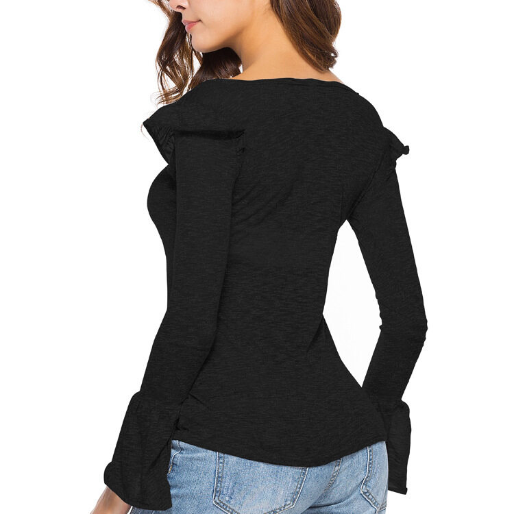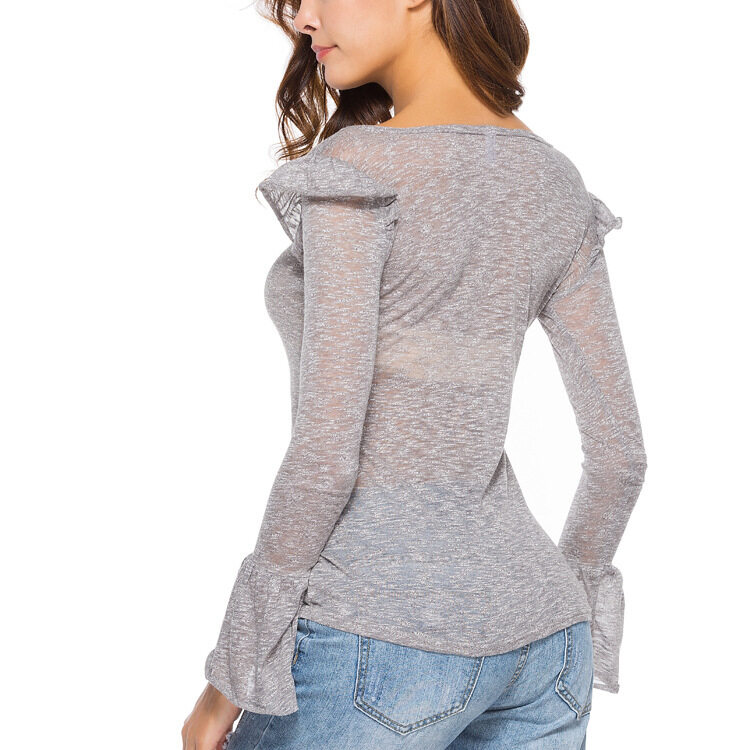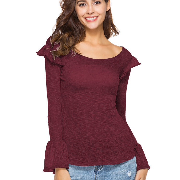 EDQRDQ Women Casual O-Neck Long Sleeve Bell Sleeve Cotton Blouse Thin Sun Protetion Solid Color Top