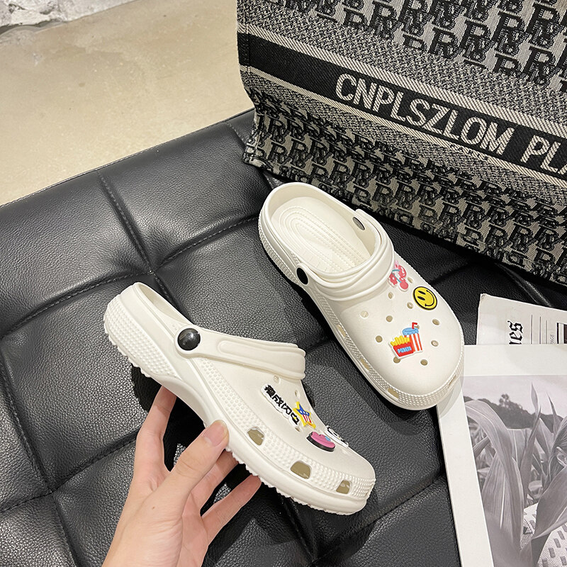 VIWANA Unisex Sandals For Women Men Plus Size 44 Summer Beach Slippers Korean Style Black White Slip On Clogs Women Croc Shoes For Women On Sale