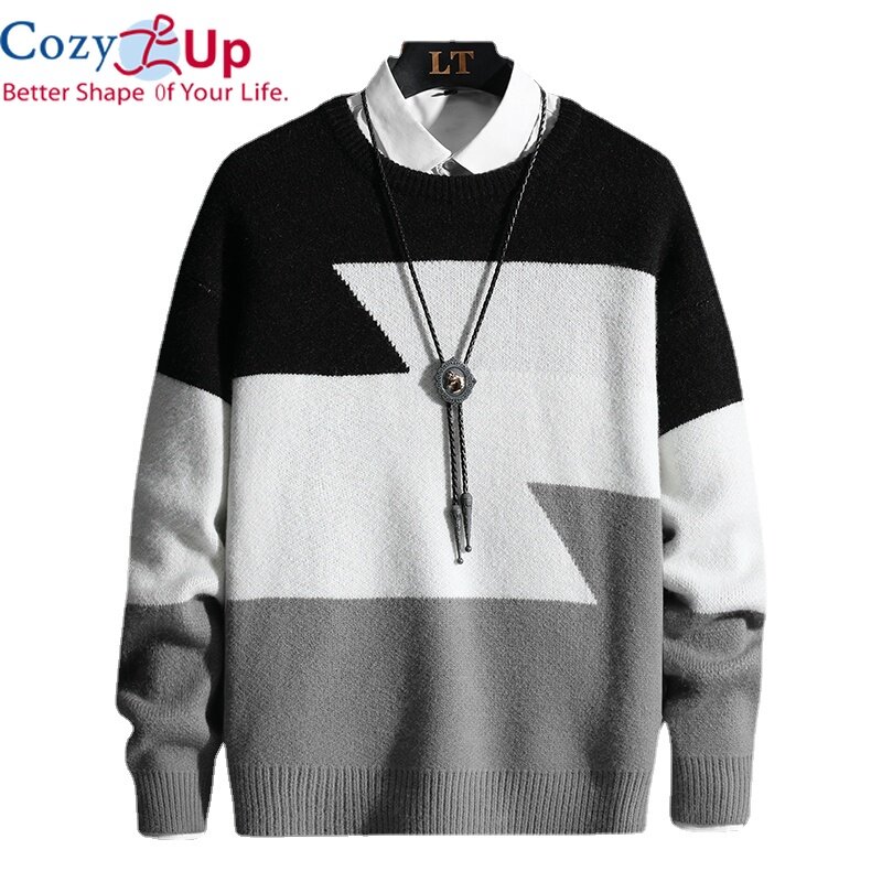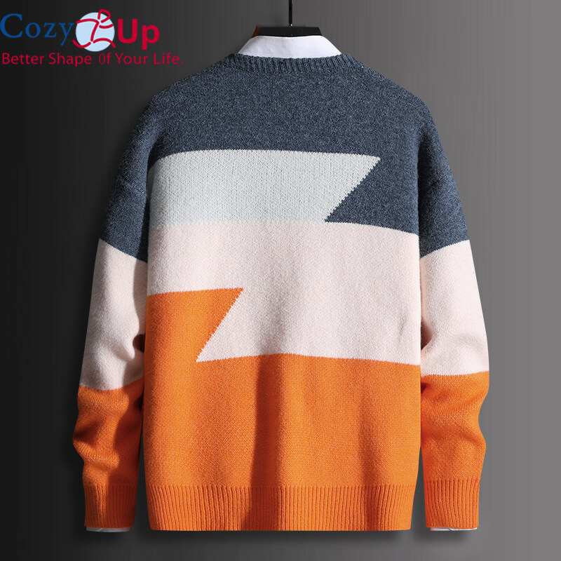 Cozy Up Men Long-sleeved Knitted Pullover Round Neck Color-blocking Soft and Thick Warm Sweater