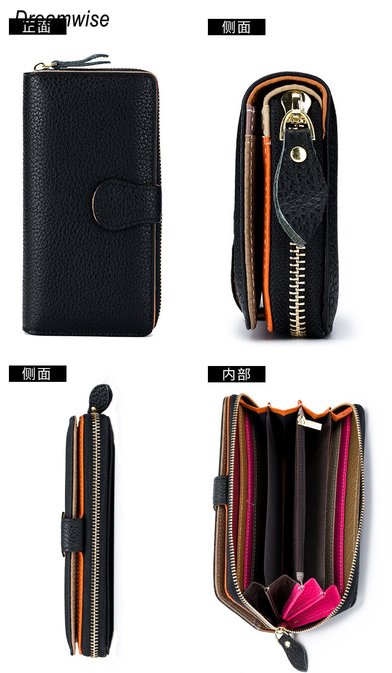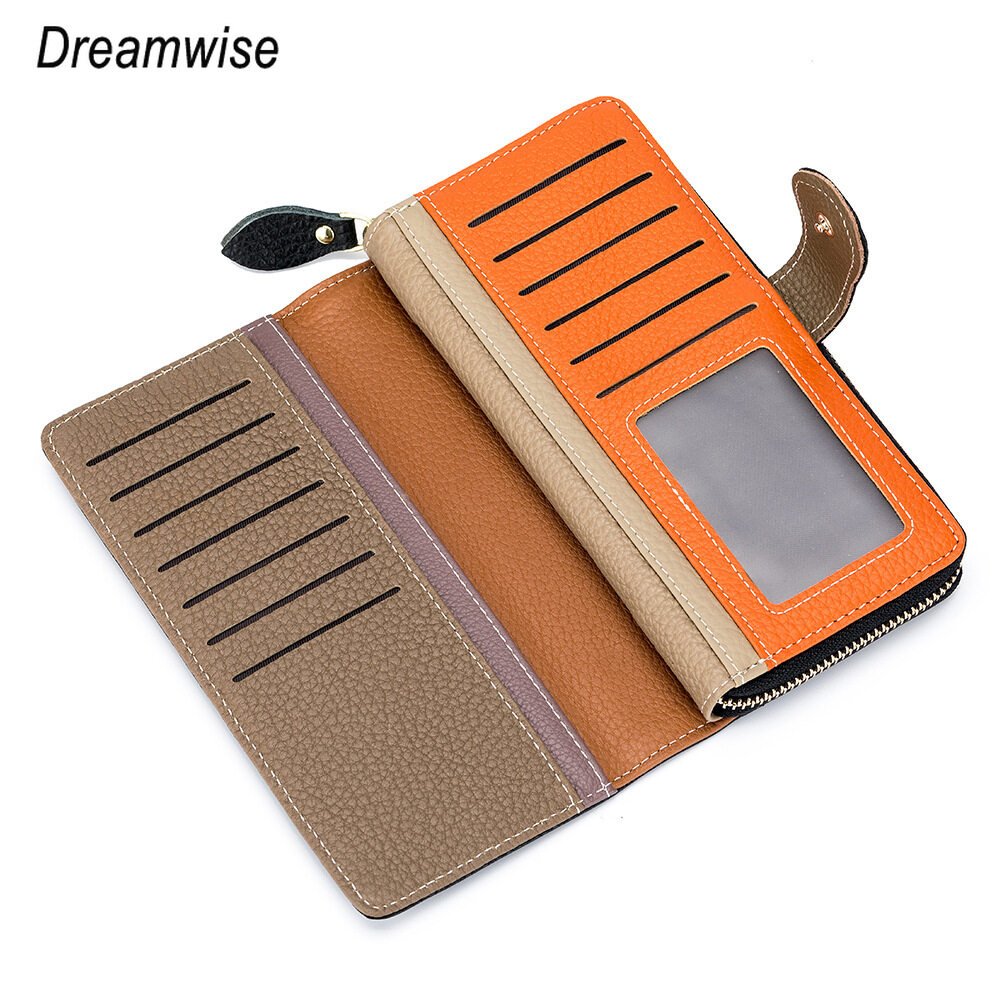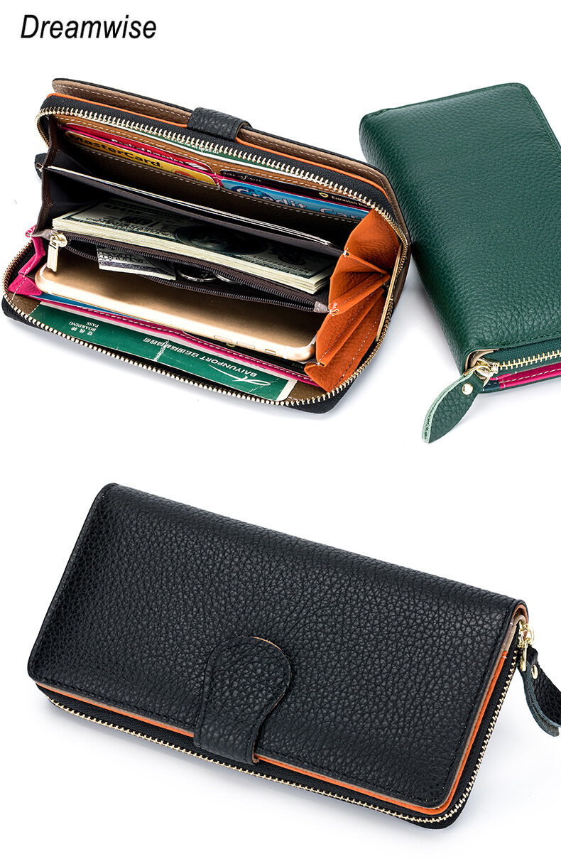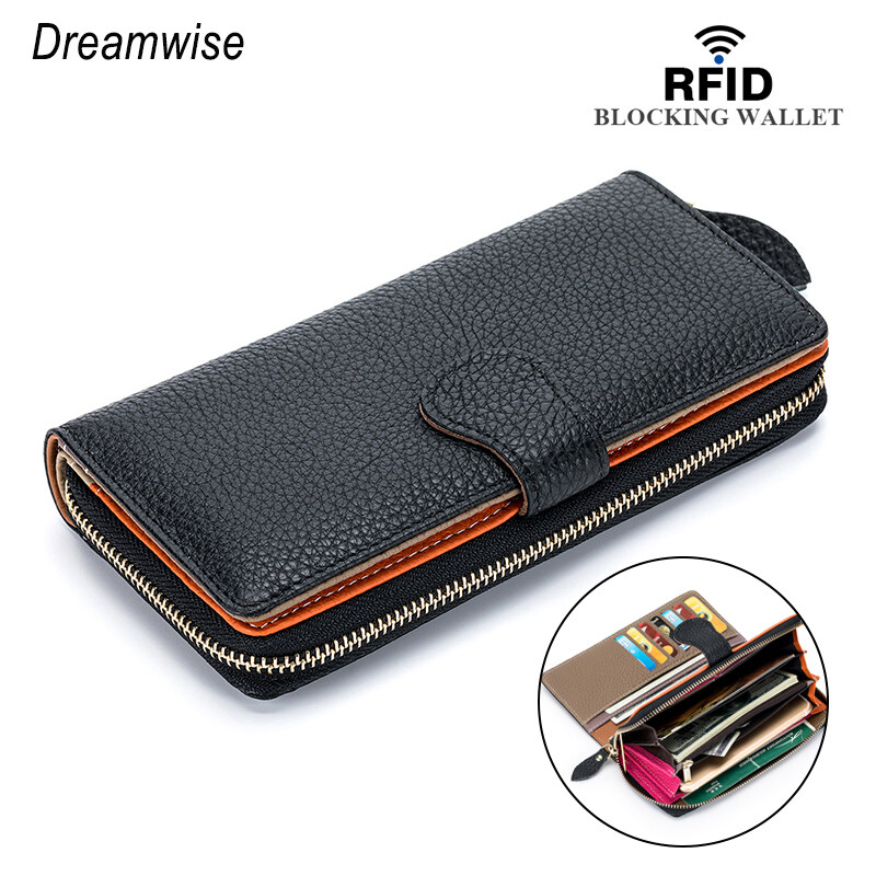 Dreamwise RFID Anti-theft Brush Long Wallets for Women New Real Soft Cowhide Clutch Coin Purse Ladies Card Holder Mobile Phone Bag
