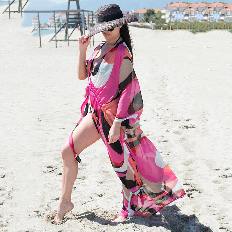 2023 Chiffon Printing Beach Cover Up Tunic Women Drawstring Beach Cardigans Colorful Maxi Dress Bikini Cover Ups