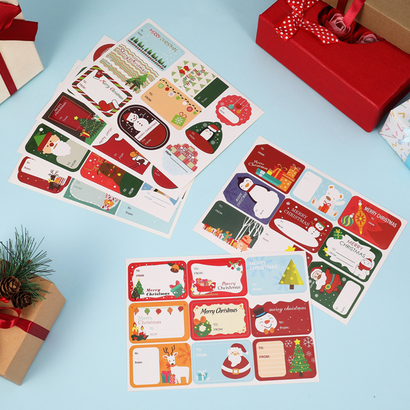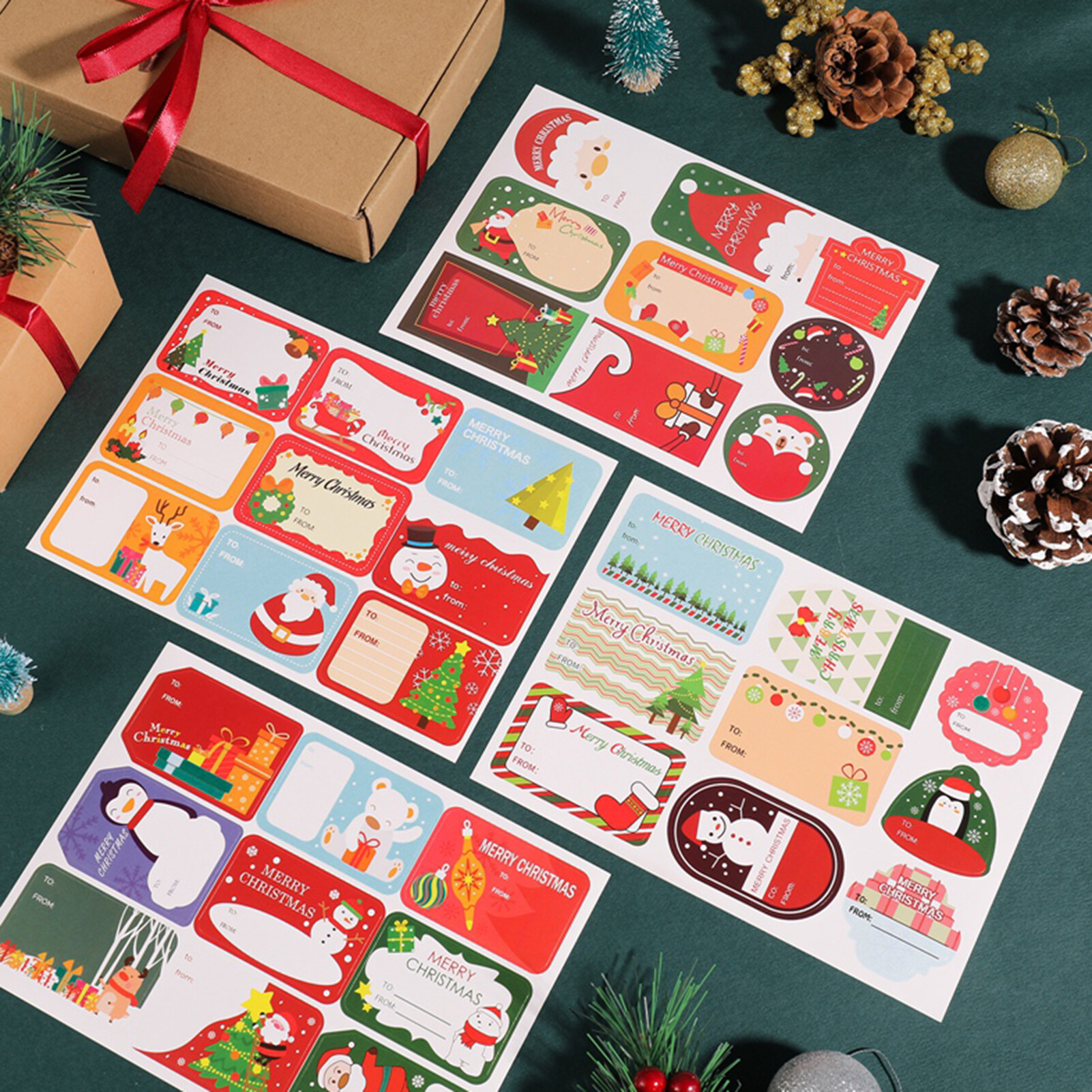 108Pcs/12Sheets Merry Christmas DIY Gift Stickers XMAS Name Tags New Year Present Seal Label Stickers Christmas Gift Packaging Decoration Stickers