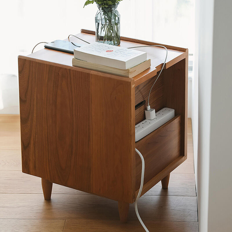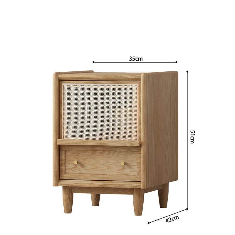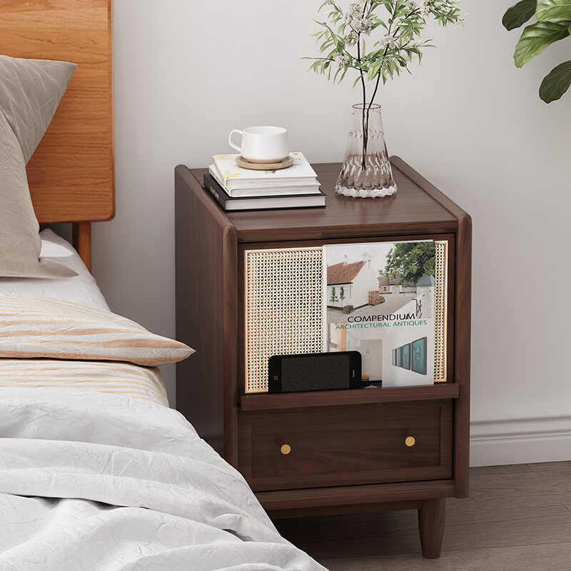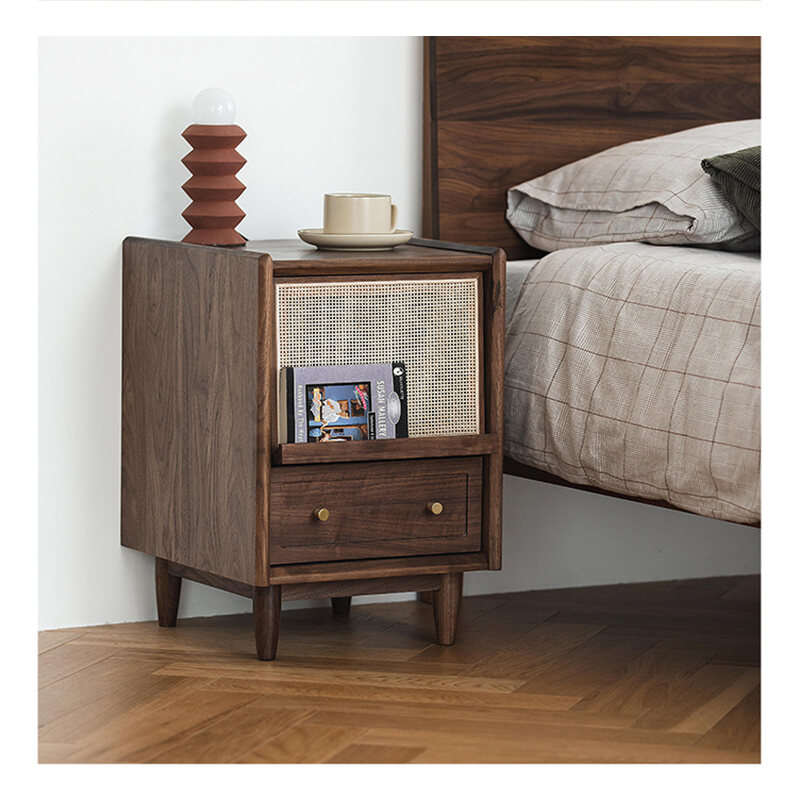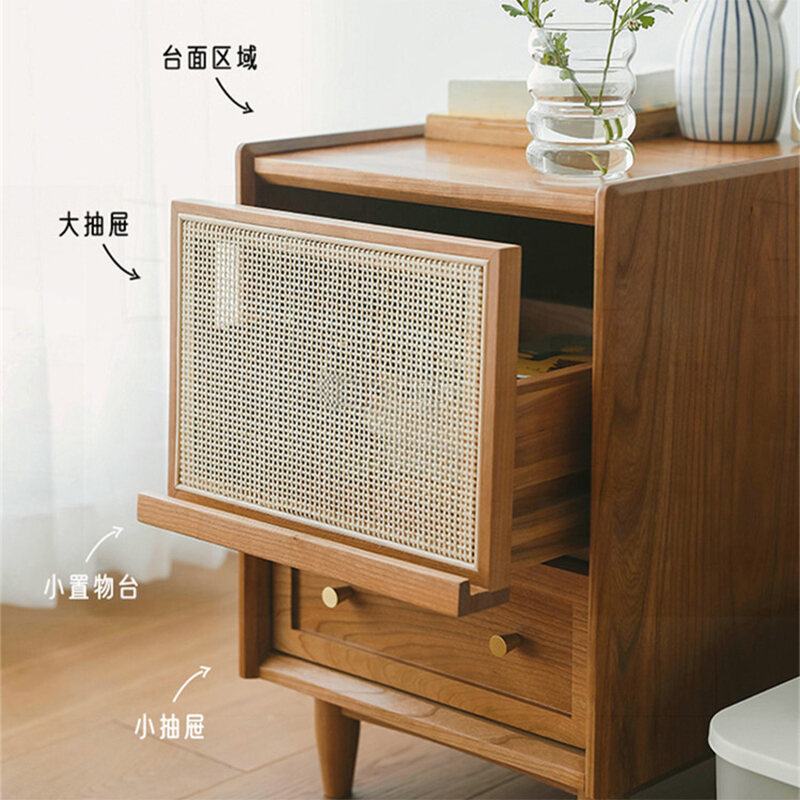 Nordic Solid Wood Bedside Table Rattan Ultra Narrow Storage Cabinet Black and White Sofa Side Japanese Bedroom Bedside Cabinet
