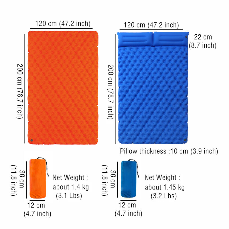 Packing list:Double sleeping mat x1Inflatable bag x1Storage bag x1