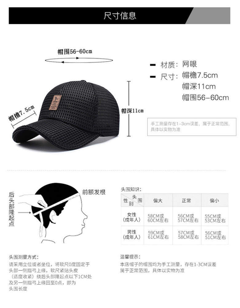 Product Category: Baseball Cap Applicable gender: male Material: Polyester Style: all-match Popular elements: embroidery Pattern: letters Suitable season: summer, spring, autumn Applicable gift-giving occasions: birthdays, holidays, trade fairs, advertising promotions, anniversary celebrations, opening ceremonies Eaves shape: curling Cap style: dome Hat style: wide brim Color: blue, black, light gray, dark gray Size: adjustable Function: sunscreen, windproof, sunshade, insect proof Applicable scenarios: Mountaineering, outdoor, golf, cycling, sports meeting