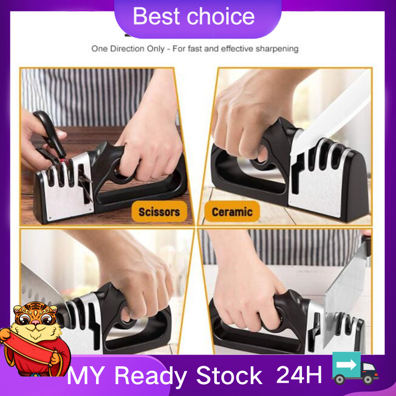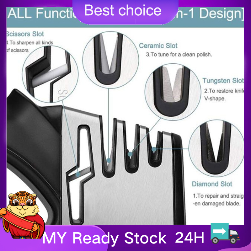 ?Free gift?New Handheld Non-Slip Four-In-One Multi-Function Quick Sharpener Home Kitchen Utensils Kitchen Knife Scissors Sharpener