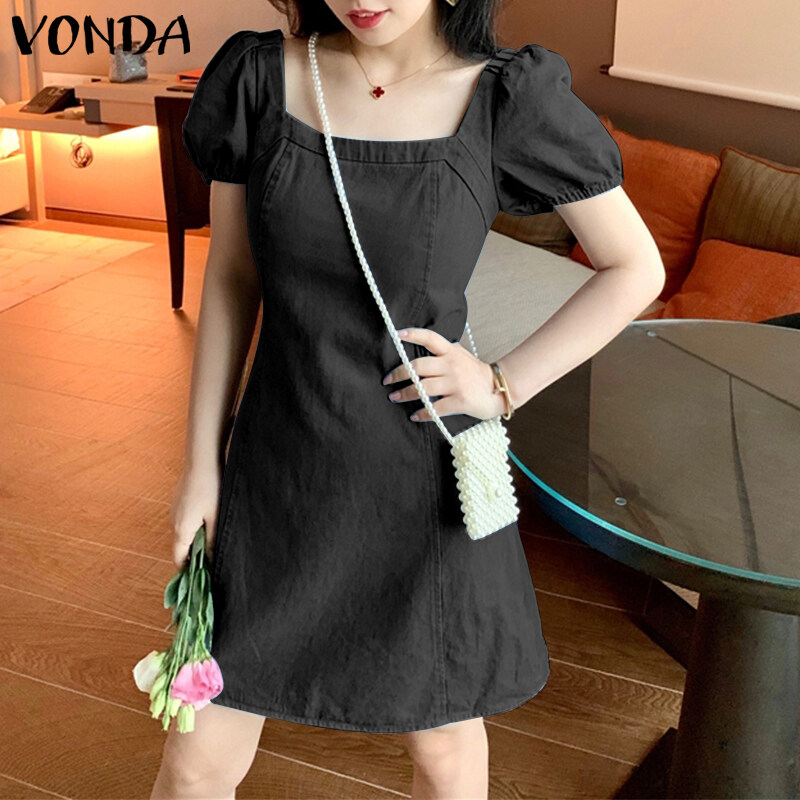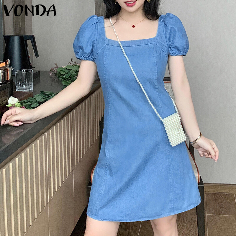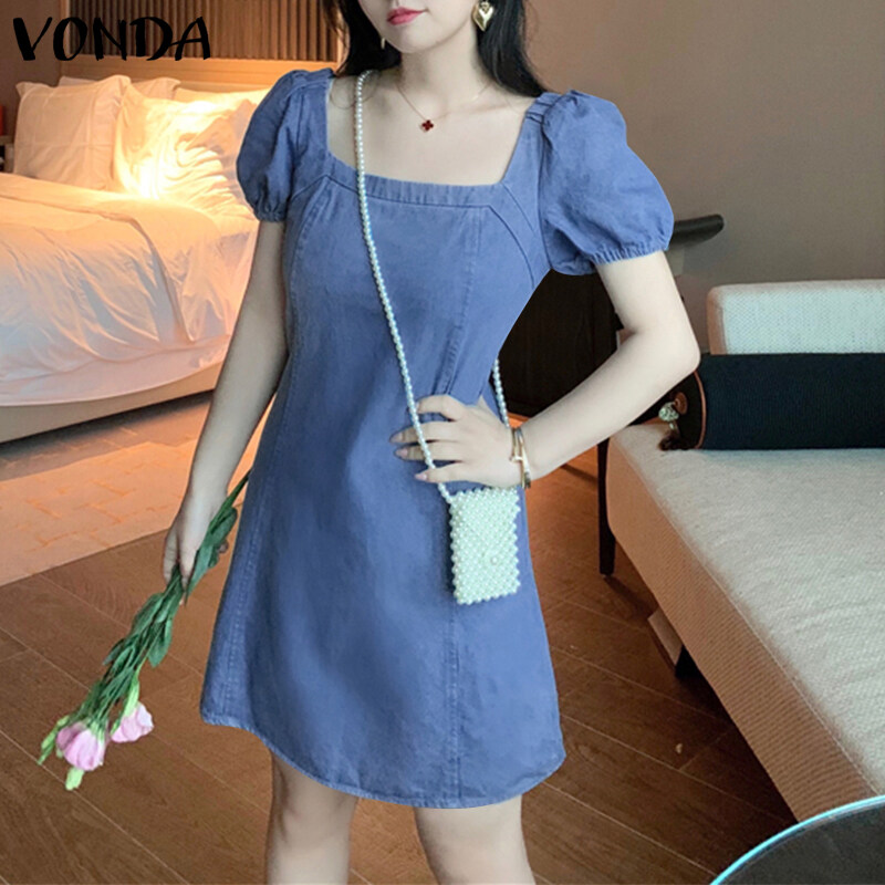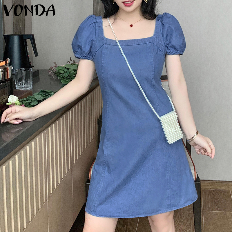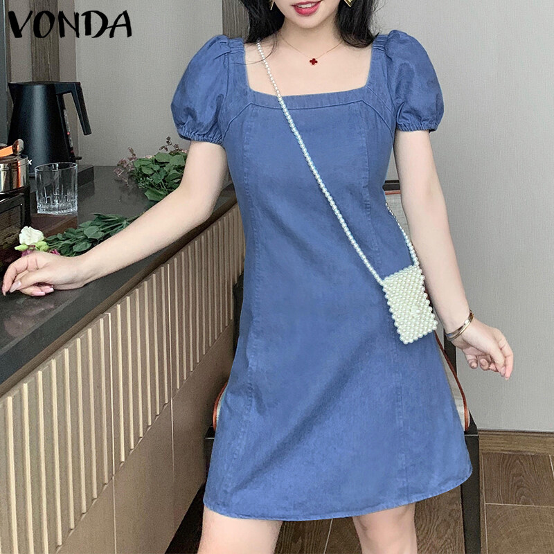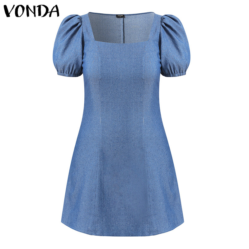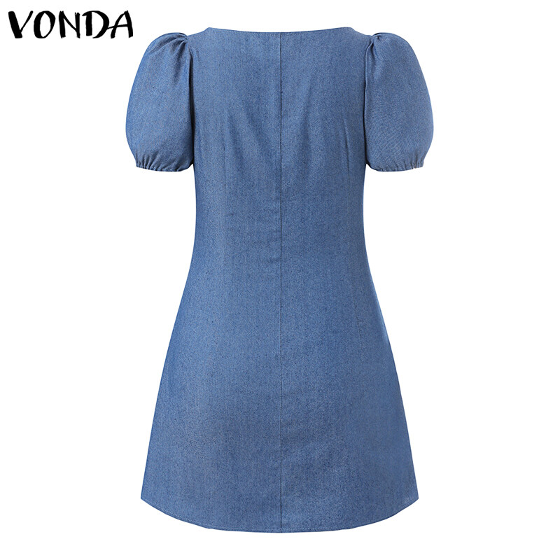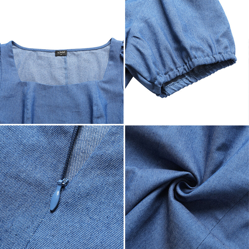 Forevercan VONDA Women Fashion Short Sleeve Holiday Party Denim Dress