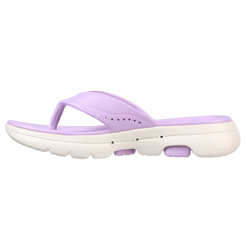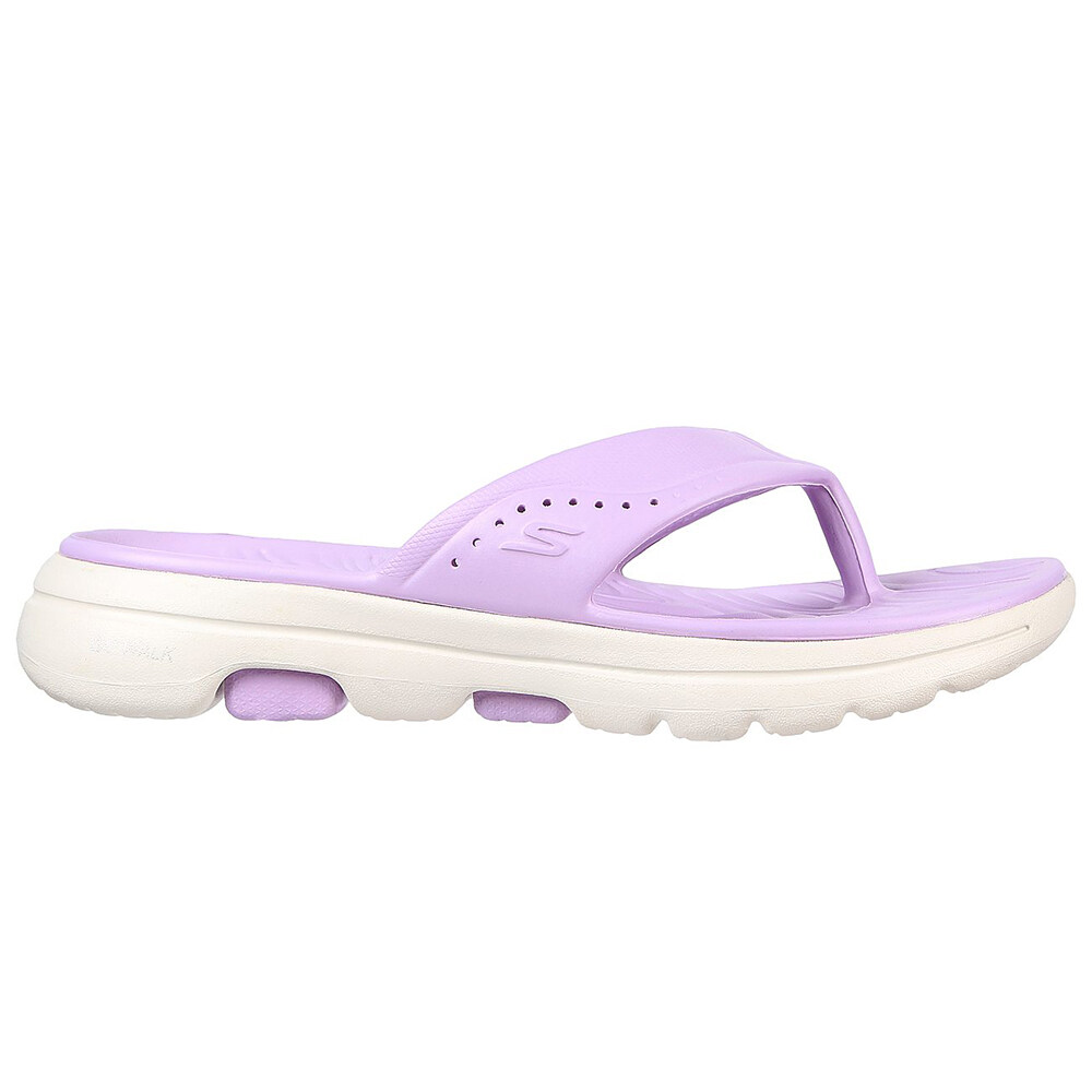 Style sunny days in easy-wearing comfort with Foamies®: Skechers GO WALK 5™. This sculpted EVA thong sandal features a lightweight ULTRA GO® cushioned midsole and high-rebound Comfort Pillar Technology® for added support.