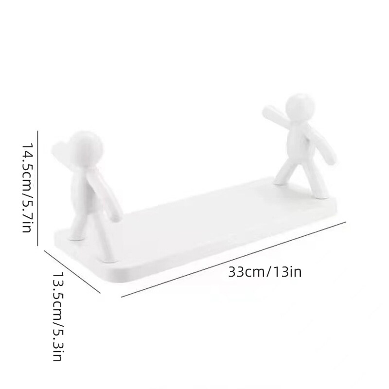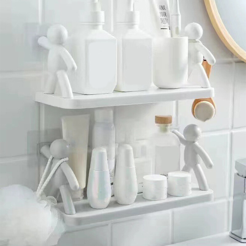 Houseeker Villain Design White Floating Shelves No Drilling Cosmetic Storage Rack Wall Mounted Hanging Spice Shelves Decor for Kitchen Bathroom Toilet