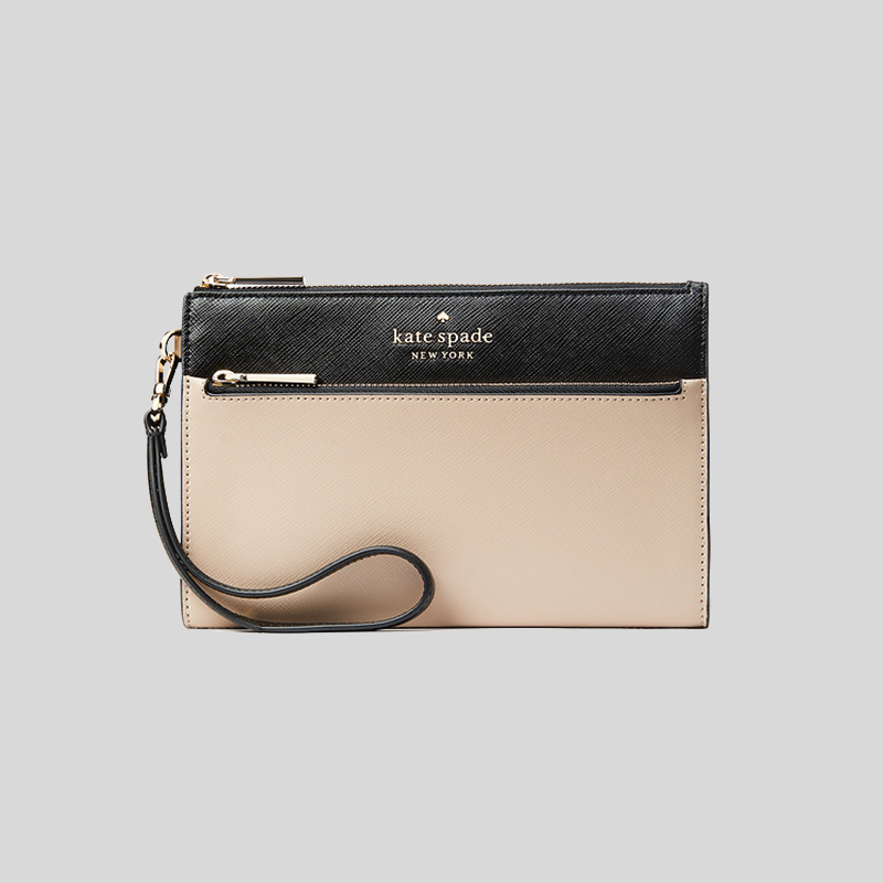 Kate Spade Staci Colorblock Saffiano Leather Medium Wristlet Warm Beige K6122
