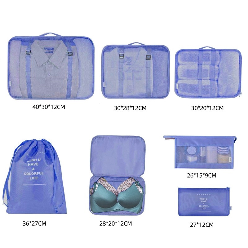 7 Pieces Set Travel Organizer Storage Bags Suitcase Packing Set Storage Cases Portable Luggage Organizer Clothe Shoe TidyPouch