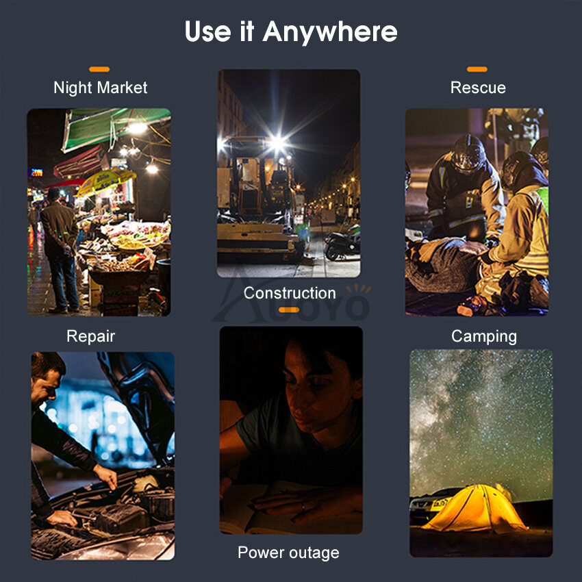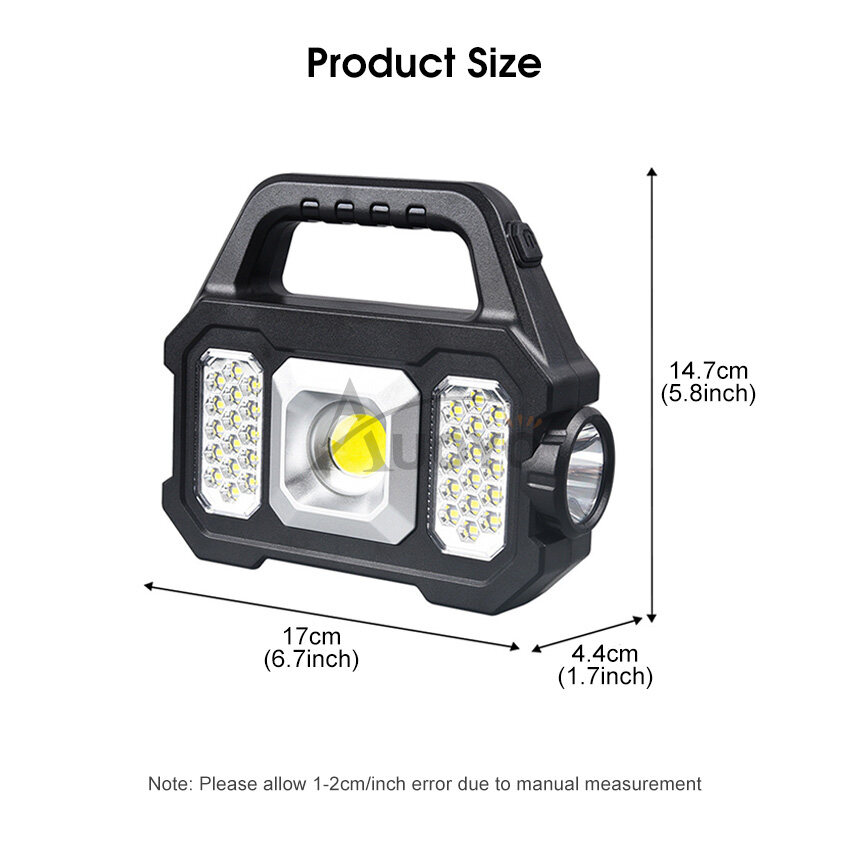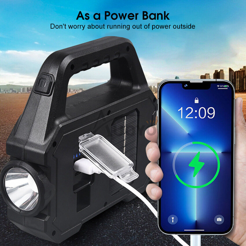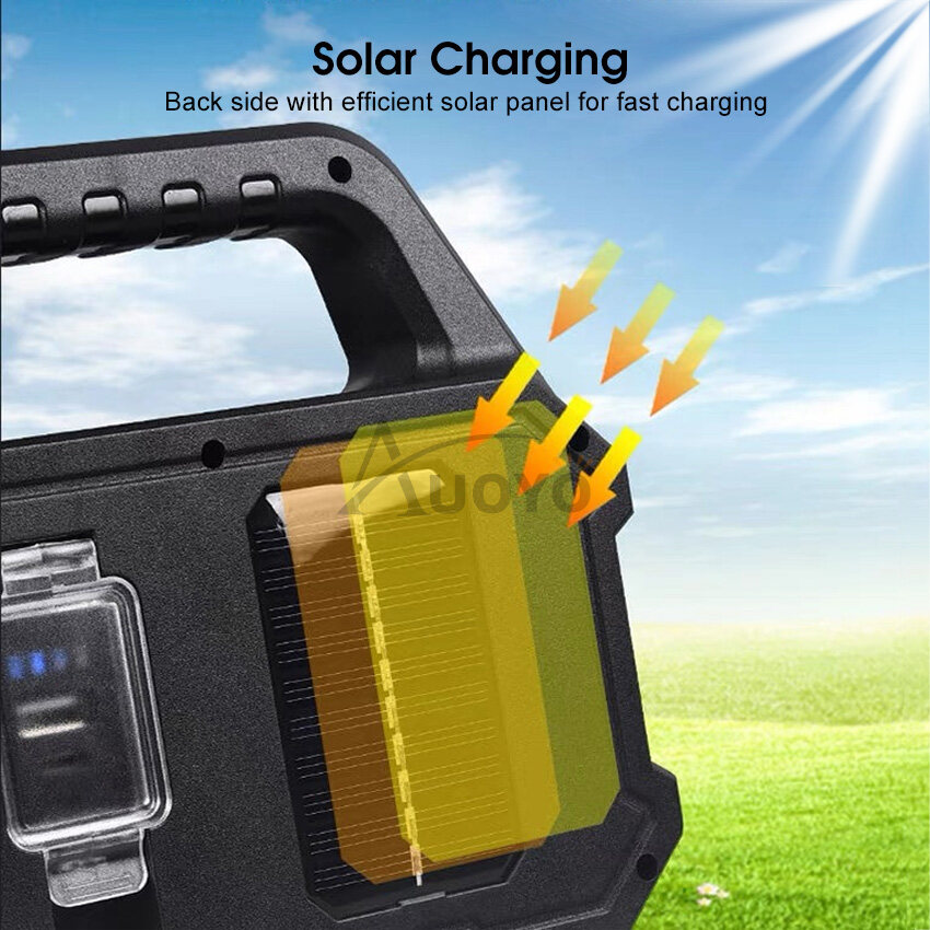 Auoyo Solar Outdoor Lights Led Work Light Portable Camping Light Handheld Emergency Lamp Floodlight Flashlight Spotlight SOS Warning Lighting Outdoor Waterproof Light USB Rechargeable Mobile Power Lam