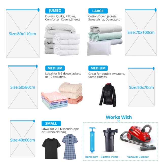 Vacuum Bag Storage Reusable Vacuum Storage bag for clothes Seal Bag Space Saving Storage Bag Compression Bag Travel Storage Bag Air Pump