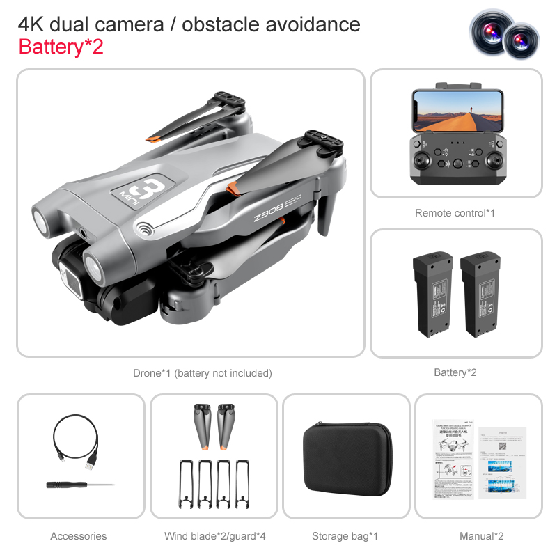 Tongjia Z908 DJI drone with camera remote control four-axis drone, with 4k HD camera, suitable for beginners, WiFi FPV real-time video, high-altitude hovering, optical flow fixed height, one-key take-