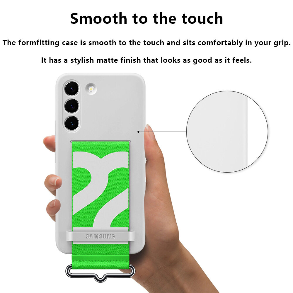 : The easy grip of your phone is made even more comfortable with the soft grip material on the Silicone Cover with Strap; A matte finish enhances the softness and ups the style factor