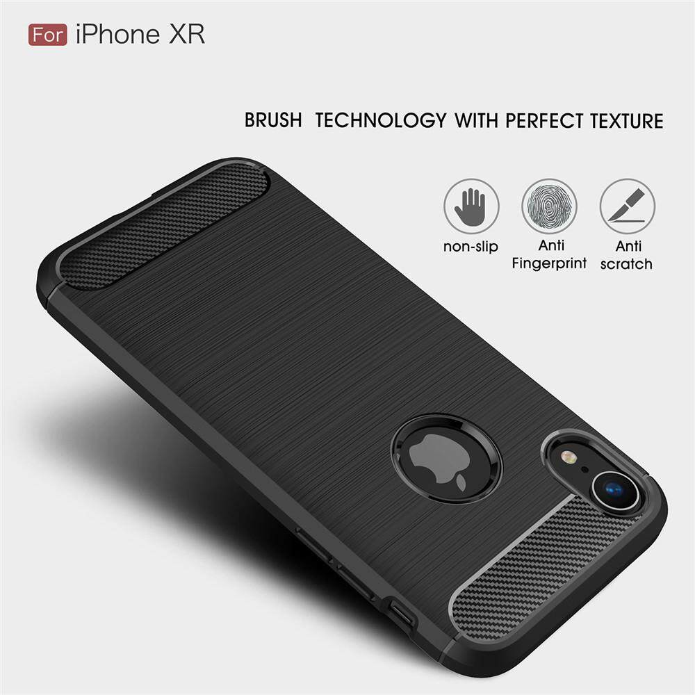 For iPhone XR Phone Case, Silicone Protection Shock Absorption Cover and Carbon Fiber Design Casing