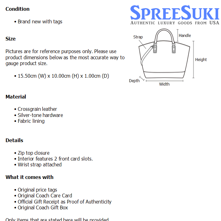 All our products are 100% authentic and purchased from Coach stores in USA. We are a reputable registered business in Singapore and it is illegal to sell counterfeit goods in Singapore. This product also comes with a gift receipt which is printed by the Coach store that we purchased the item from. It states the item that we purchased and the Coach store that it was purchased from, proving the authenticity of the item. Buy with confidence.