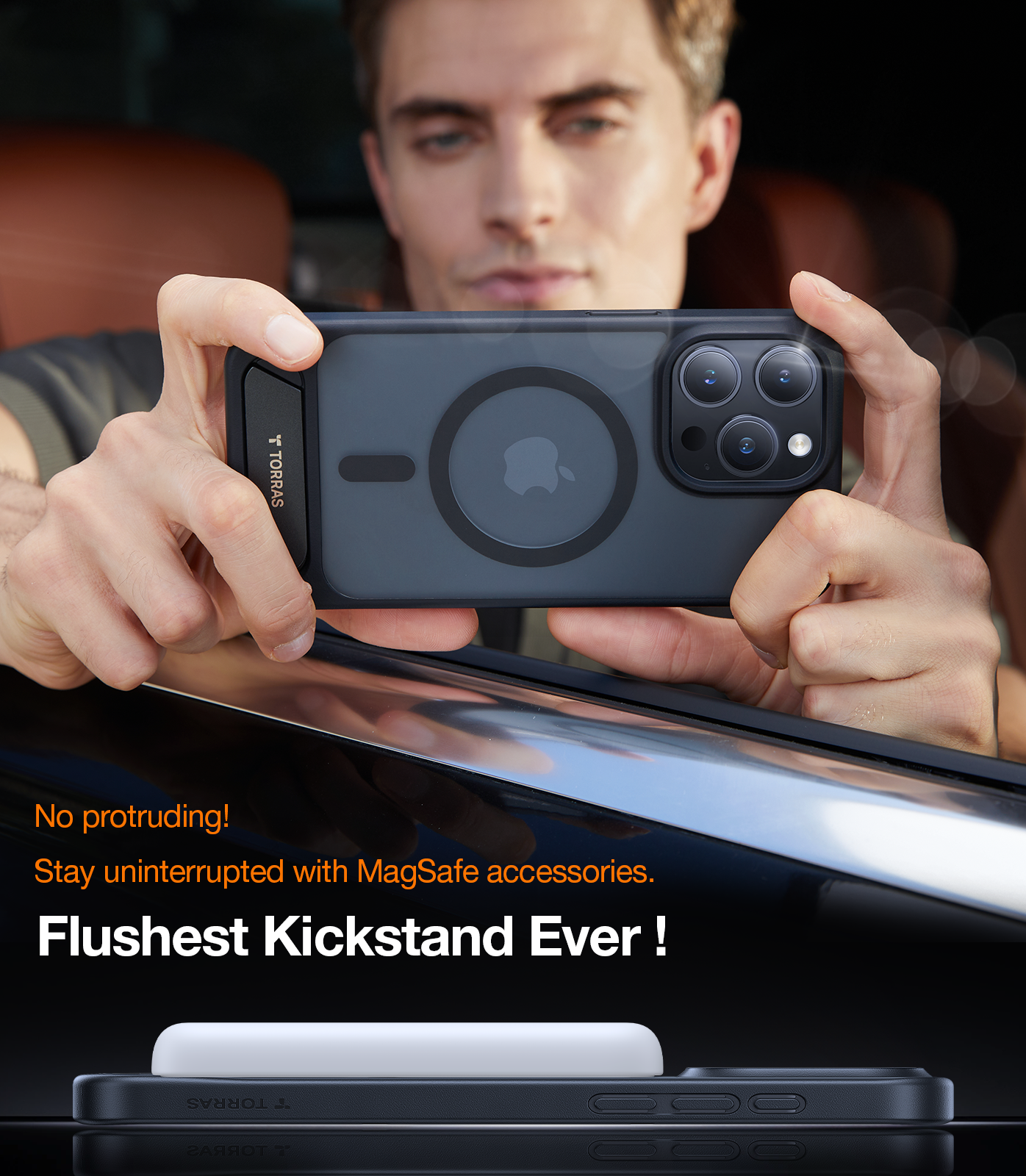 TORRAS Magnetic UPRO™ Pstand Series iPhone 15 Case, Drop Protection, Transparent Clear Air Cushioning Cover With Stand