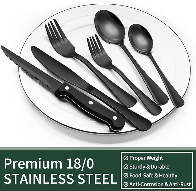 30-piece black silverware set, 6-piece set, food grade stainless steel cutlery set, home office restaurant hotel cutlery set