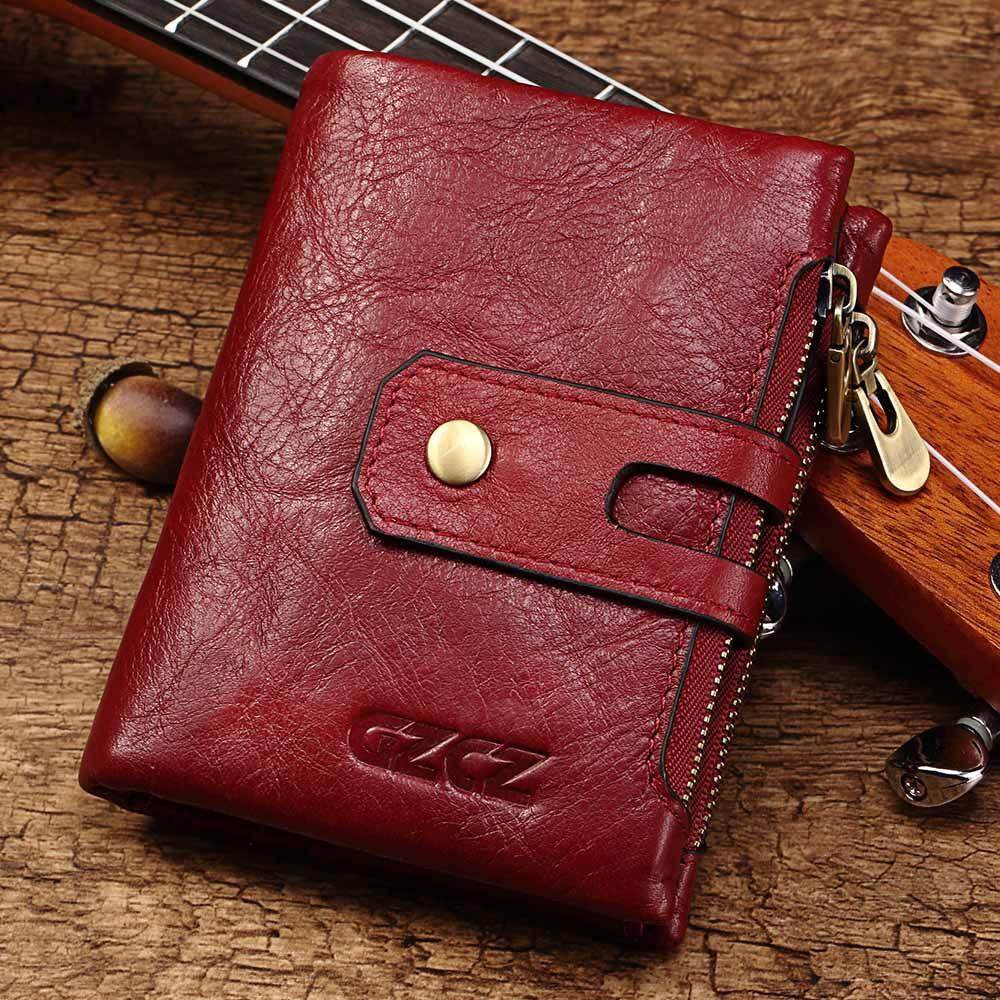 Genuine Leather Women's Wallet, SLGOL Ladies Wallet Short Fashion Hand Bag Double Zipper Buckle Change Bag Multifunction Card Bag
