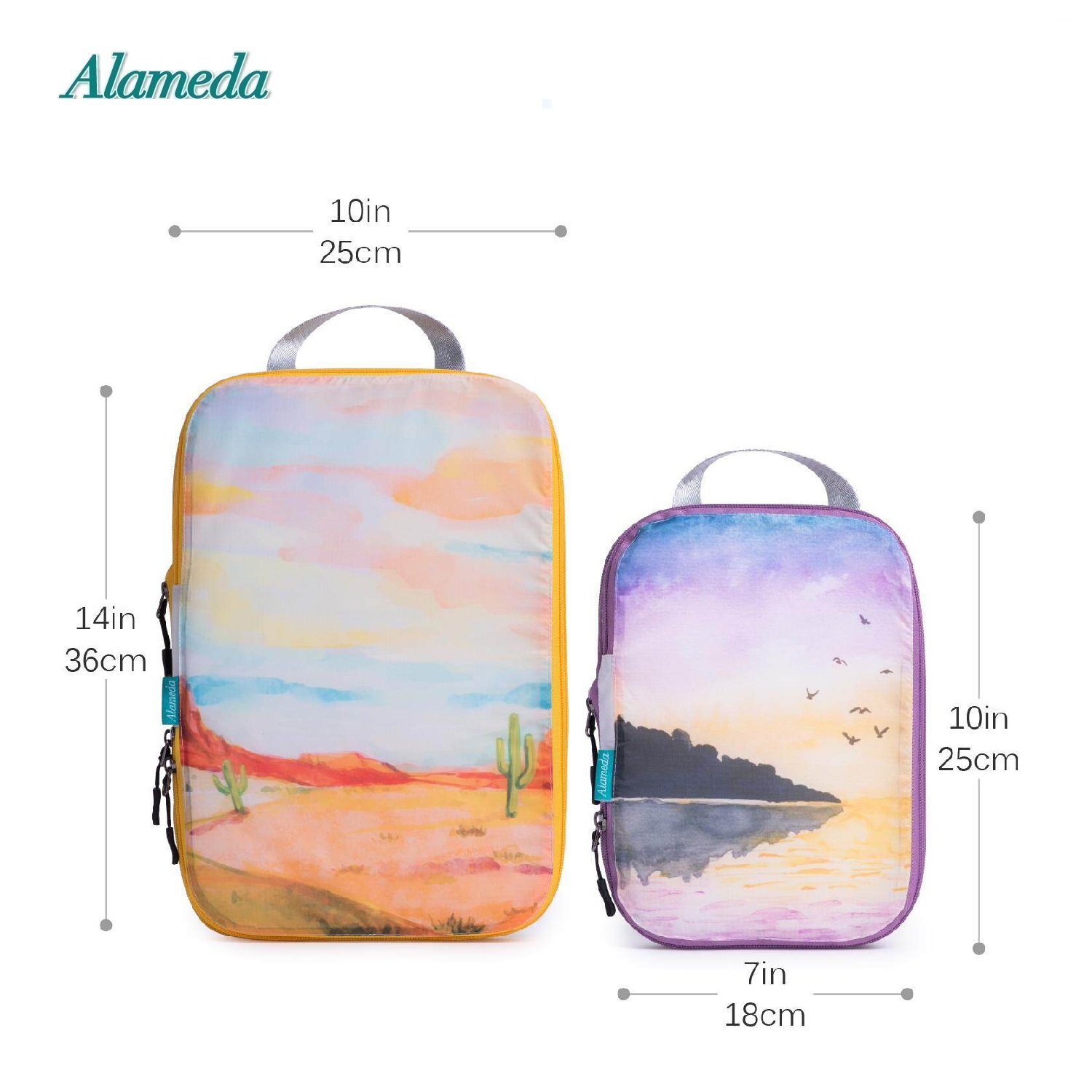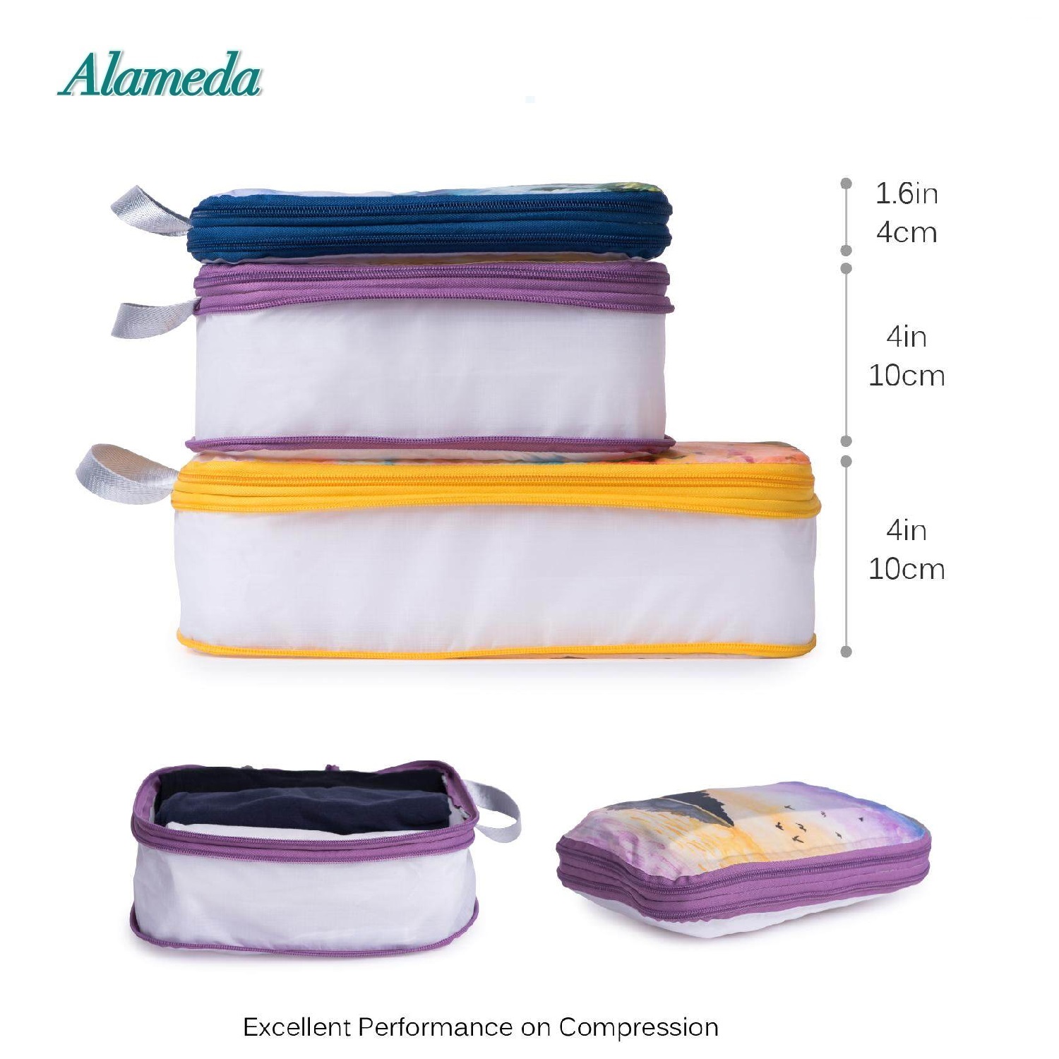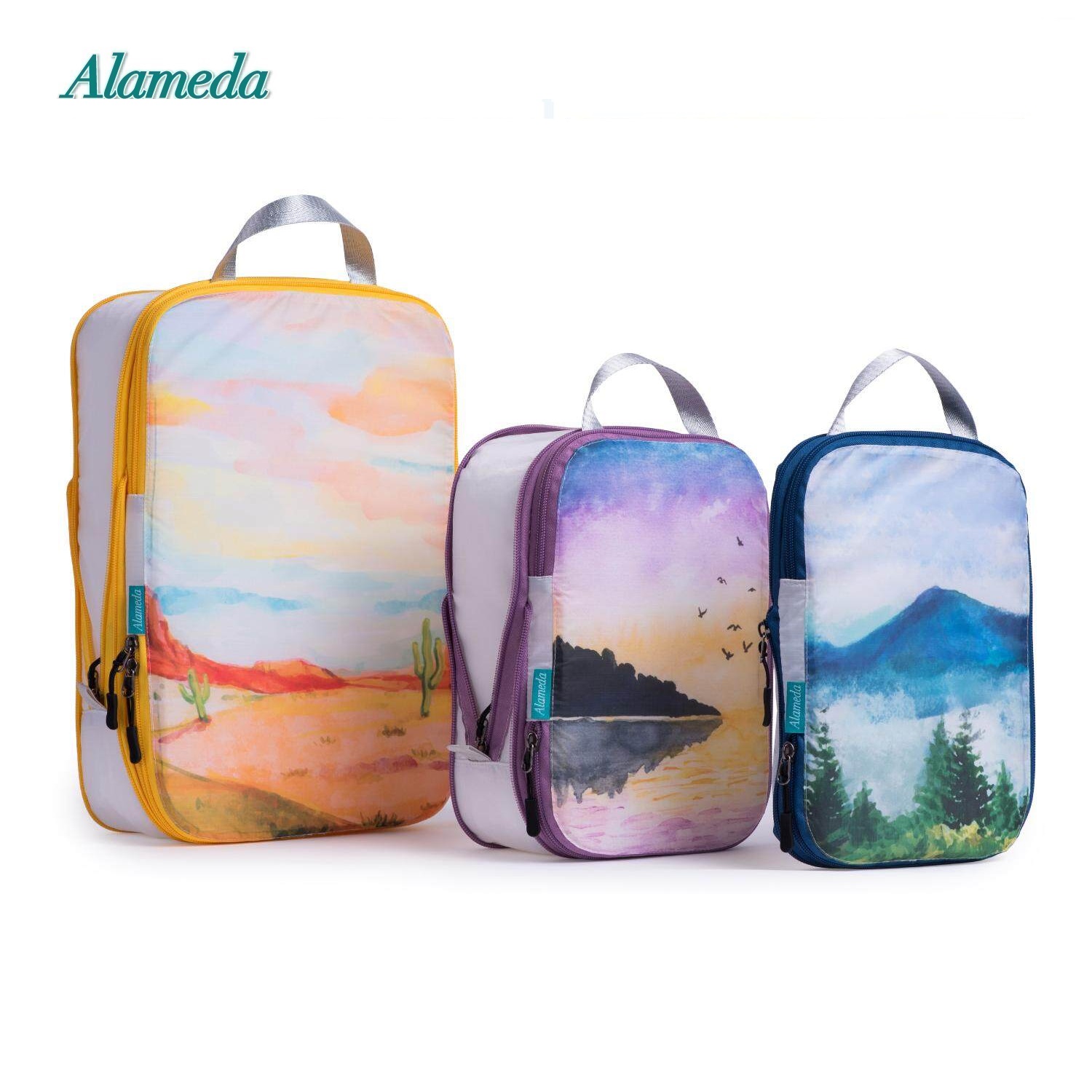 Compression Packing Cube Set for Hand Luggage 3 Pieces Set Travel Compression Bags Travel Organizer with Laundry Bagfor Luggage and Backpack(landscape A )