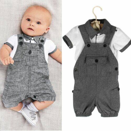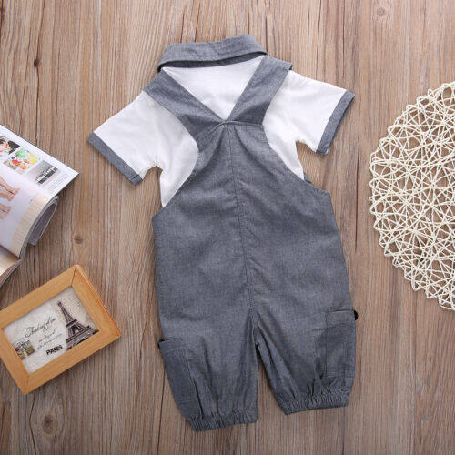 Newborn Infant Baby Boys Gentleman Clothes Short Sleeve T-shirt Shirt Tops Bib Pants Shorts Outfits Set