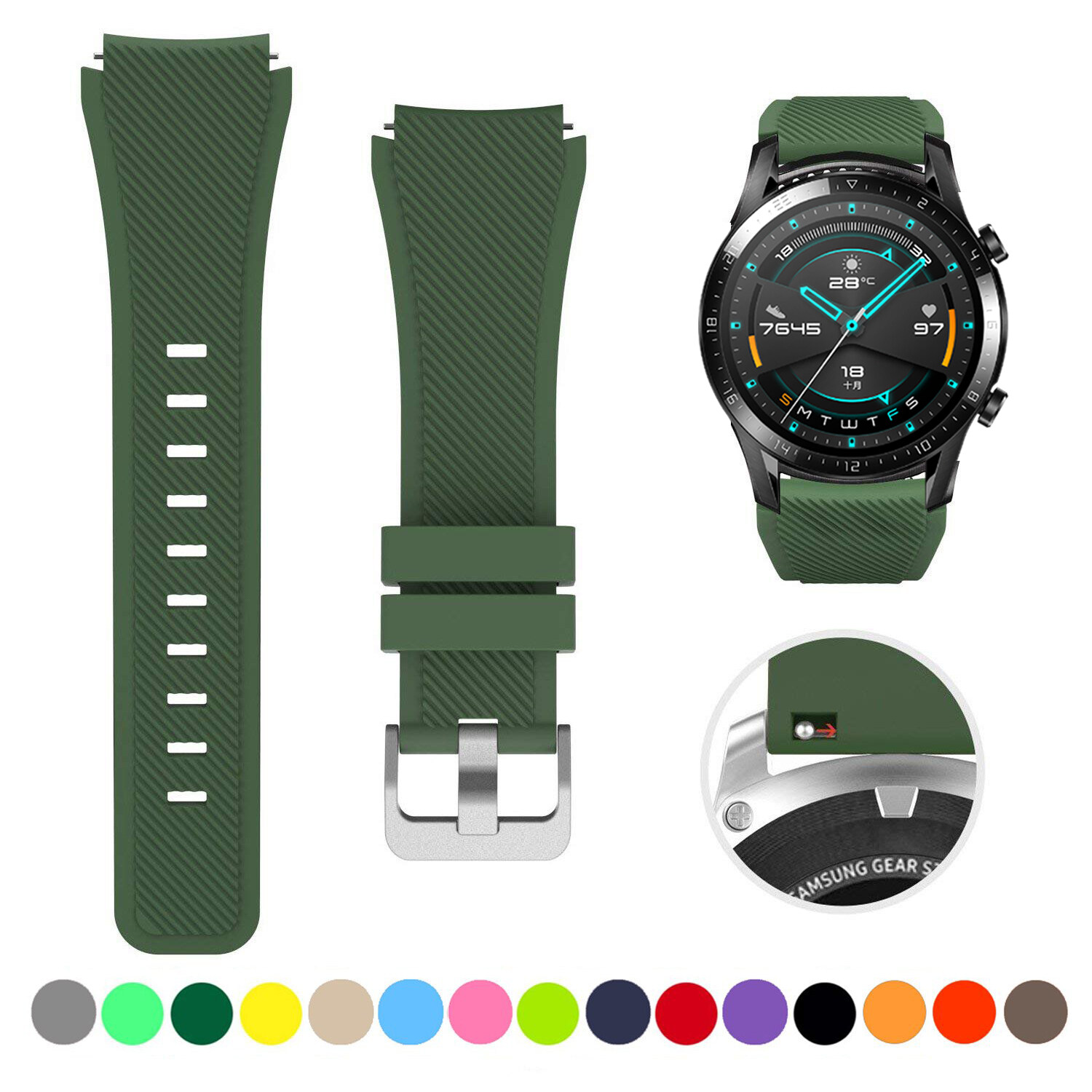 Zenia 22mm Width Replacement Classic Silicone Strap Watchband Wrist Band Watch Strap for Huawei Watch GT3/GT/GT 2/GT2/GT 2E/GT2 E/GT2E 46mm Runner Sport/Active/Classic/Elite Watch 2 3 Pro Honor GS/Ma