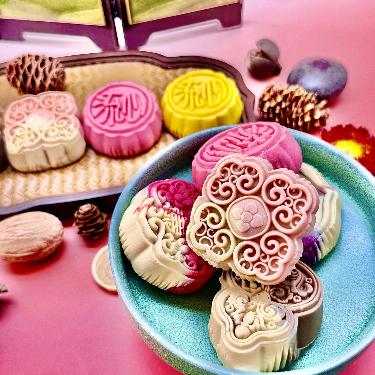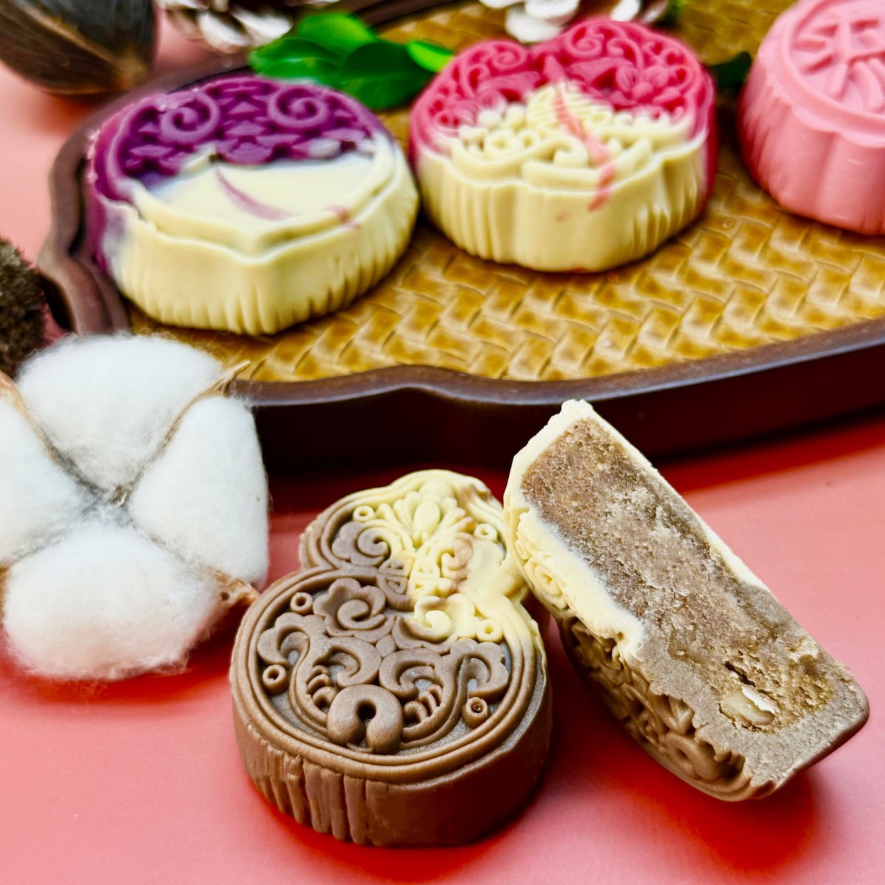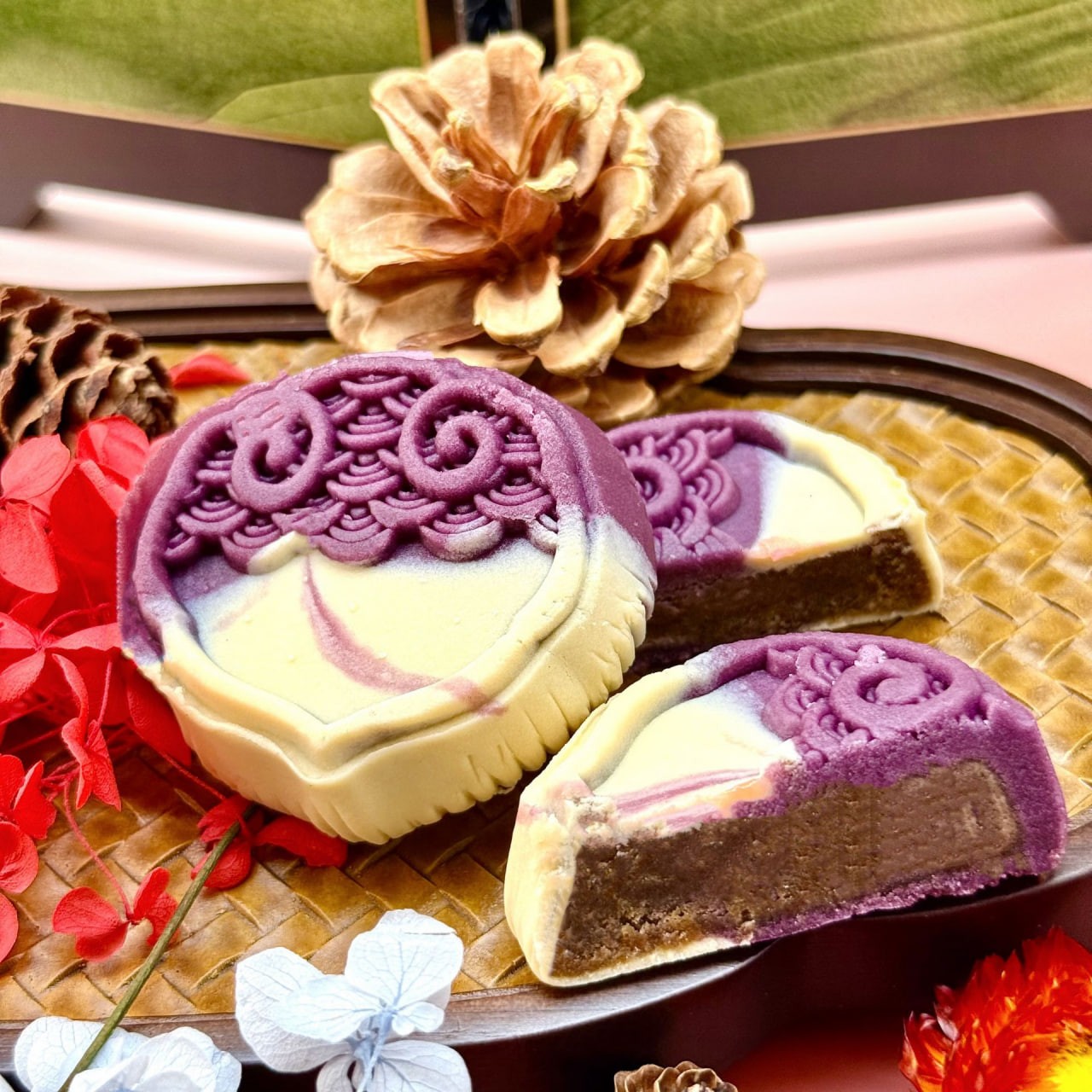 Mini-Mondkuchen mit Mandarinenschale und roter Bohnenpaste