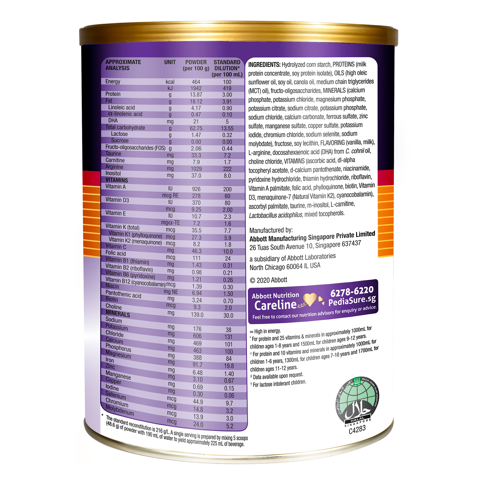 PediaSure Gold - Original Flavour (Sucrose Free), 850g