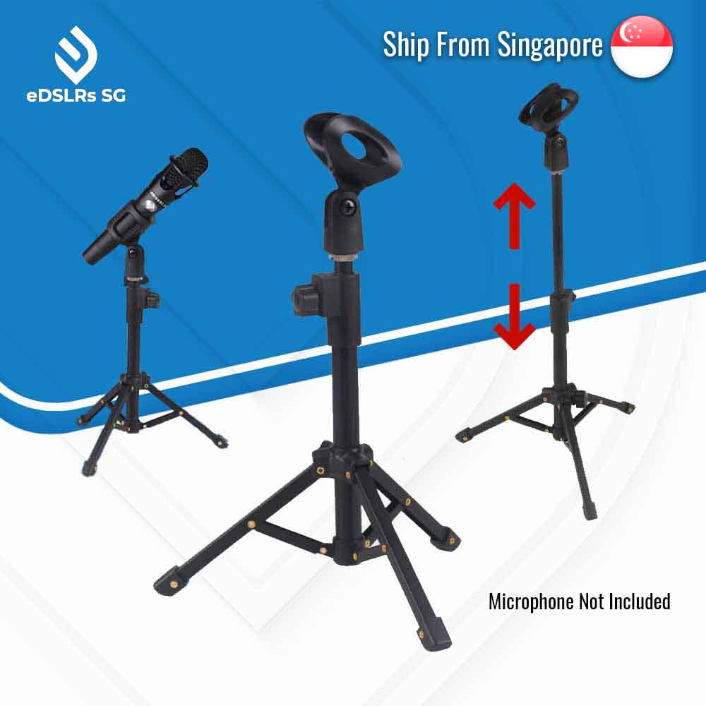eDSLRs Microphone Foldable Desktop Table Mic Stand Extendable Tripod Stand Holder with Mic Clip for Meetings Live Zoom Podcast Gaming