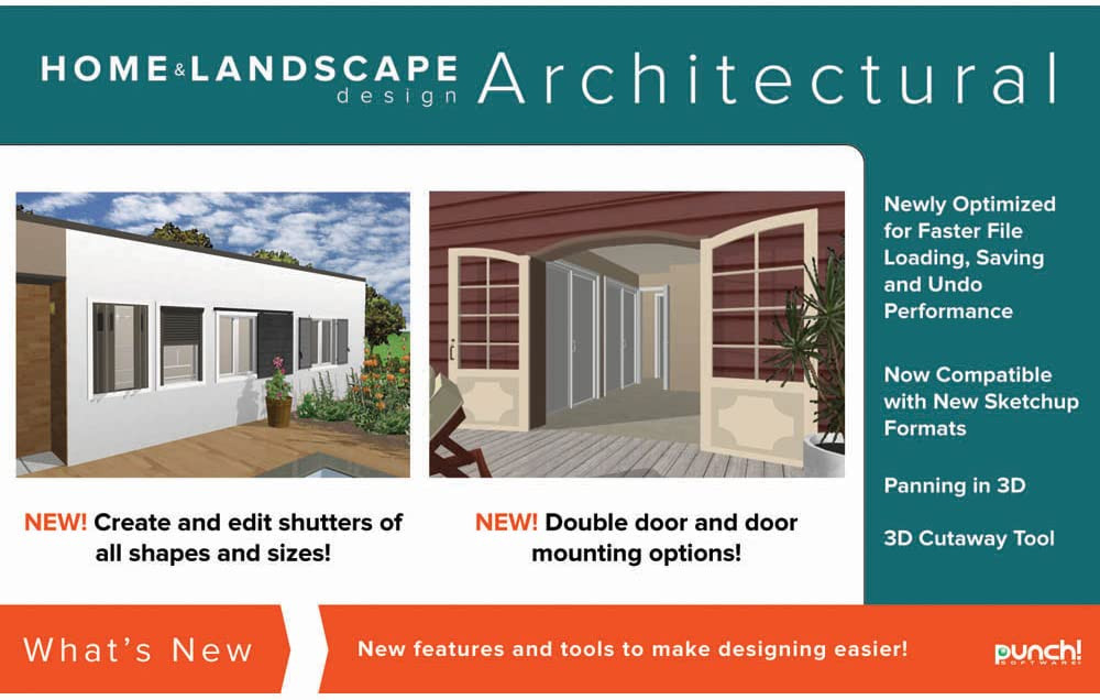 Design It - Detail It -Visualize It - Live ItEnhanced drawing tools, floor plans, brand name product libraries and photorealistic rendering capabilities make designing new homes more efficient, easier and exciting than ever! Whether remodeling, renovating, designing or building a brand new house, Punch! Home & Landscape Design Architectural Series v19 contains a powerful array of tools and features to help create unique, professional-level designs.