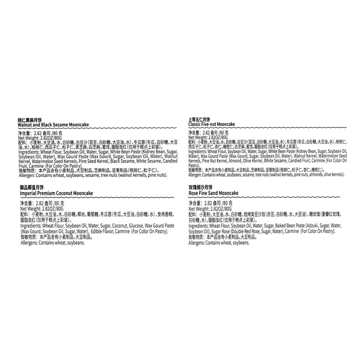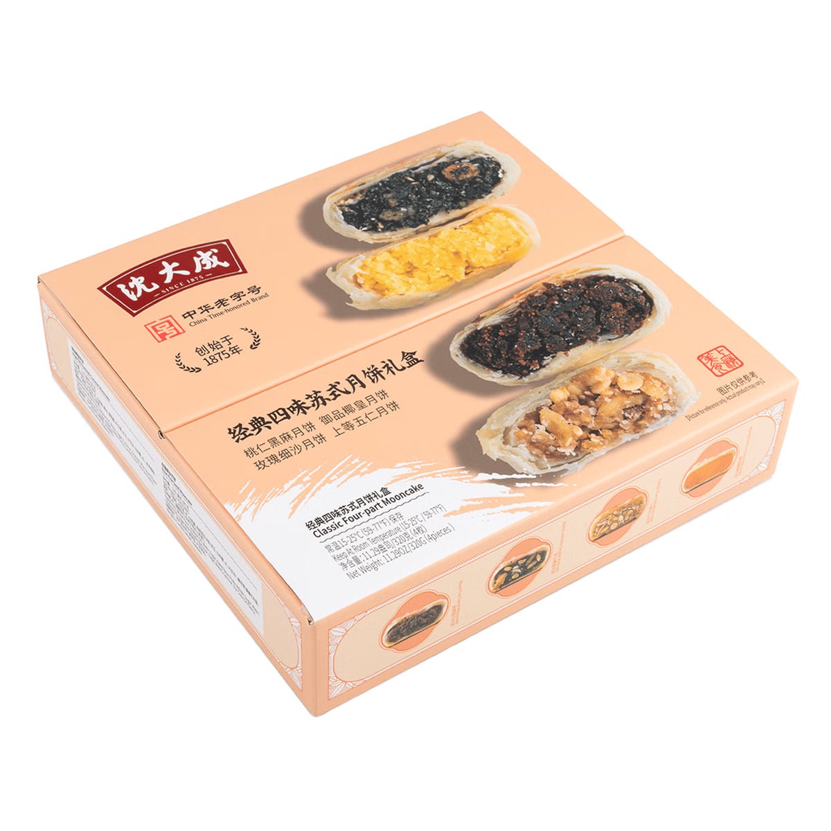 Mid-Autumn Festival Mooncakes - Classic Four Flavors - Suzhou-Style Mooncake Gift Box (4 pieces, 320g) - Black Sesame, Peach Kernel, and Five-Nut Flavor